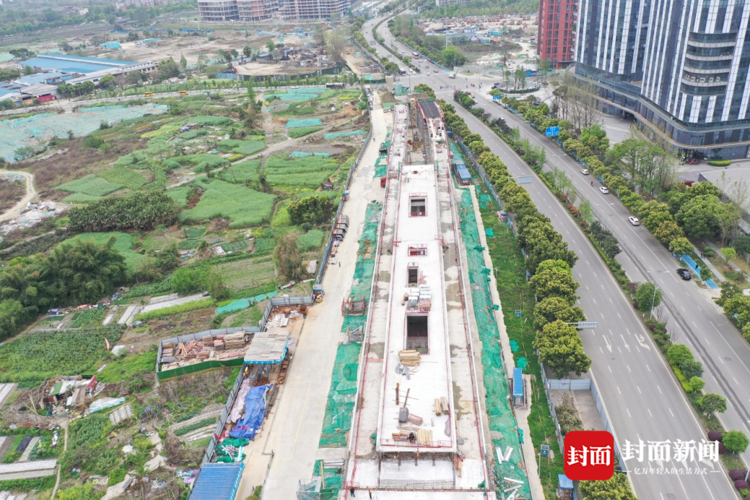 据了解,此次封顶的三官堂站位于龙舟路与三官堂街交叉口处,沿龙舟路敷设,毗邻锦江,周边住宅小区、商铺密集。