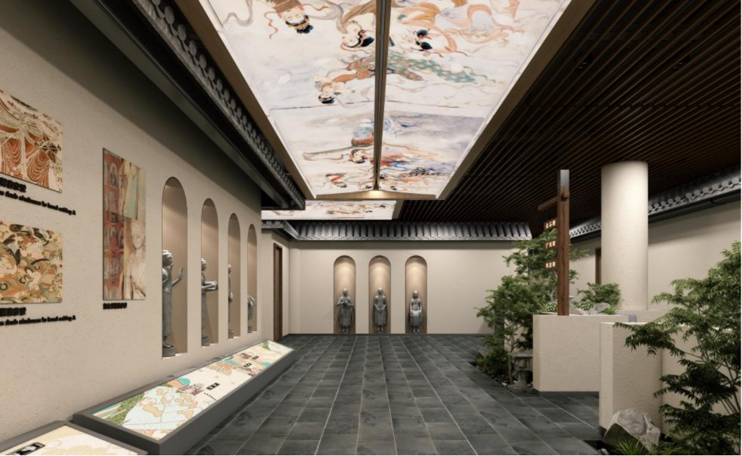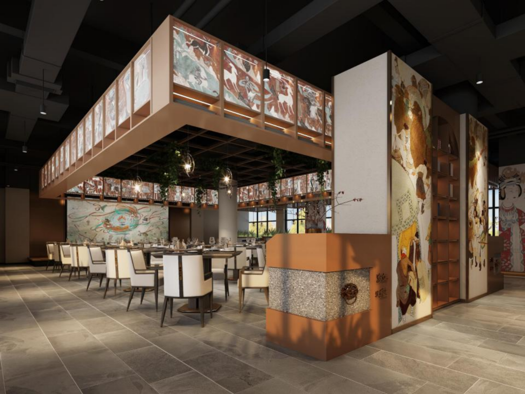 其楼也,雄毓三危,秀熙鸣沙,堪为敦煌名楼首善者焉。内精彩绝伦,展敦煌文化元素于其中。“书中四贤”有张芝,“章草典范”称索靖。阳关玉关“两关”雄镇边陲,河仓雅丹怀古之情悠悠。盖勋良将,“三怨成府”;李暠建国,荐贤纳才。更有莫高珍藏,国之瑰宝;悬泉驿置,汉简墨香。雷音礼禅香烟绕,飞天起舞迎佳宾。享美食,品饕餮于一瞬;饱眼福,观翰墨之厚重。