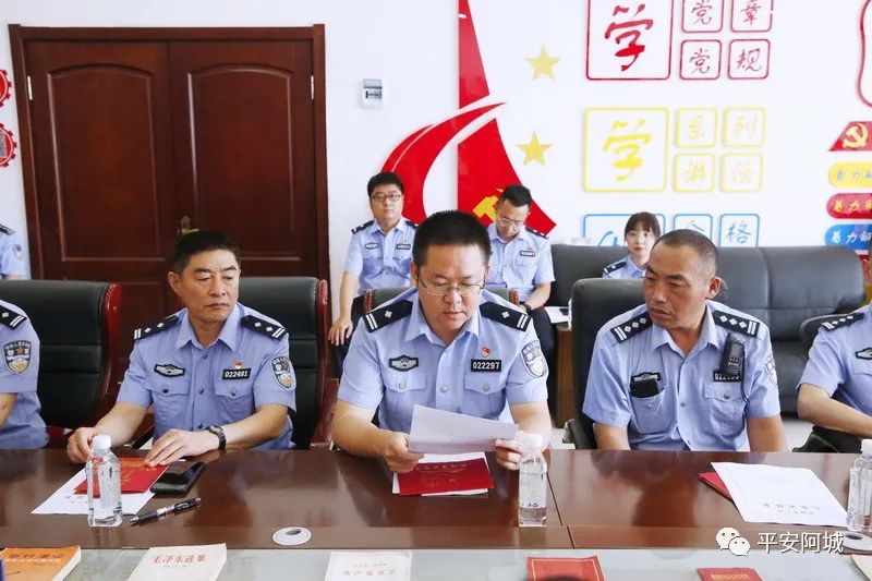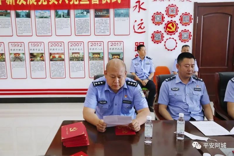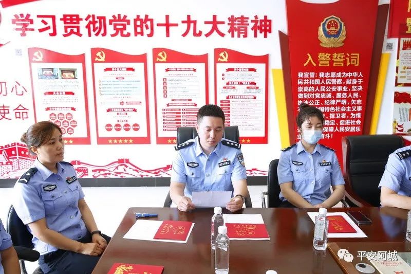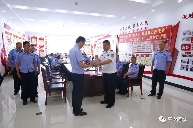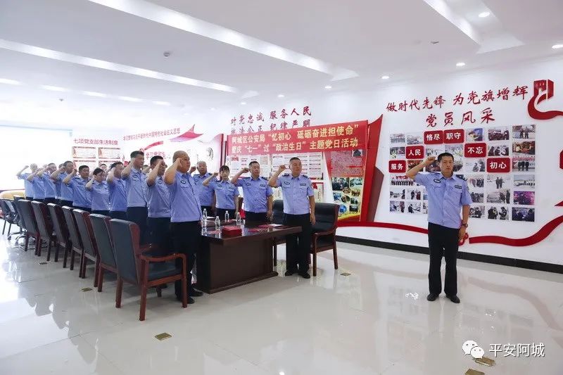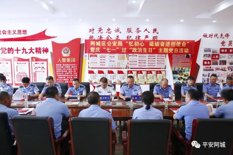 为巩固深化“不忘初心、牢记使命”主题教育和党史学习教育成果,按照阿城区局制定的《开展党员“政治生日”活动实施方案》的部署要求,结合庆祝建党101周年系列活动。2022年6月29日上午,阿城区公安局举行党员“政治生日”主题党日活动。区局政委王寅飞,政治处主任赵宁带领区局机关党委和政治处相关同志,为全局32名来自各党支部党员代表和2022年新入党的13名新党员代表过“政治生日”。