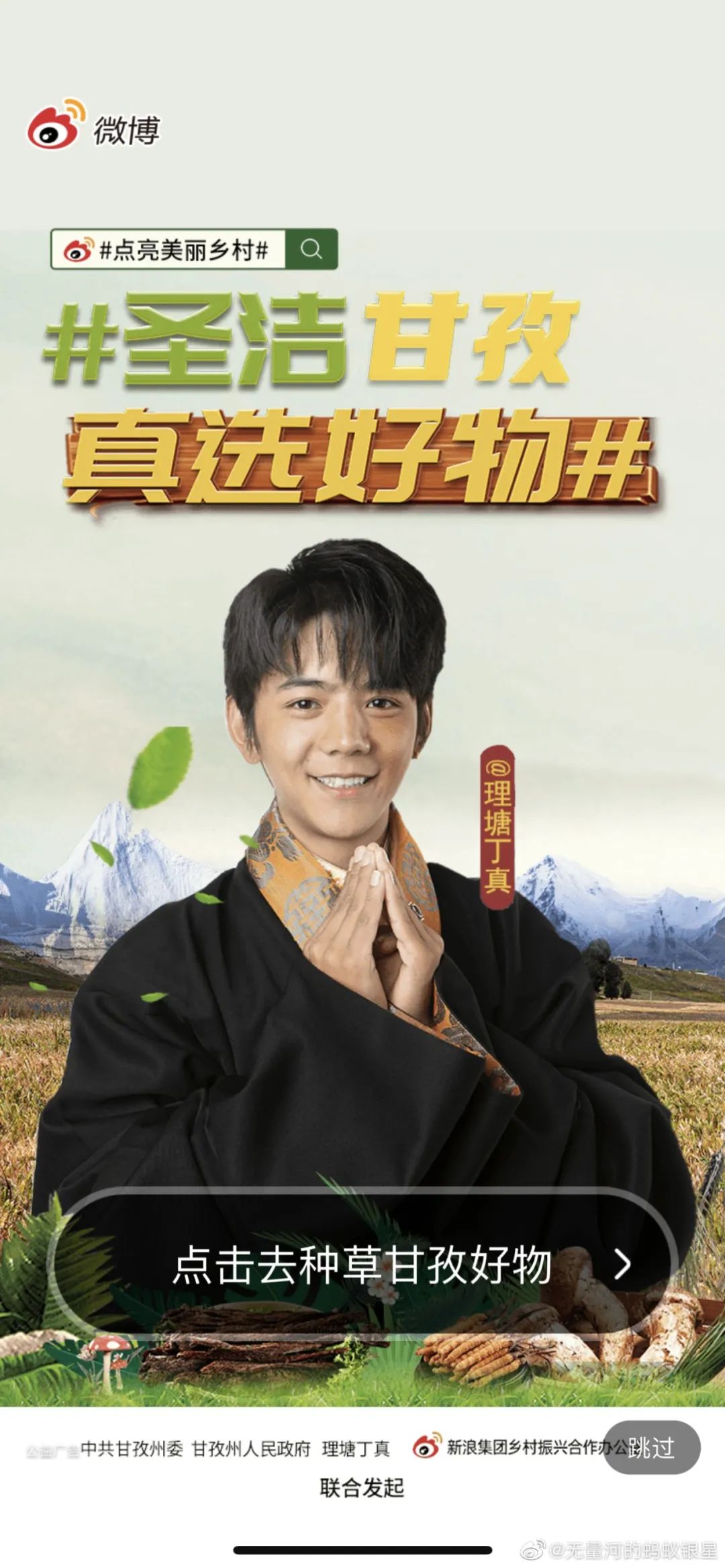 而新浪微博作为《圣洁甘孜·“真”选好物》纪录片的核心宣发平台,为该片量身定制了传播规划,@微博三农团队将监测丁真全年热点,借“丁真热”制造“甘孜产品热”;同时,“微博好物”和“微博三农电商”整合资源,打造甘孜#原产地探访计划#、#甘孜真选好物#等系列花式种草的话题,将甘孜优质产品的特点、优点与卖点展示透彻,此外拟打造#甘孜真选好物节#这一云上购物节,在双11大促节点帮助“圣洁甘孜·真选好物”策划促销活动······持续推介甘孜州文旅资源、深度赋能甘孜州农旅品牌,多维度讲好甘孜州乡村振兴美好故事,提升品牌调性与声量,协助甘孜州建立适合新媒体新消费市场的全面电商体系、打造高品质高调性的国潮民族品牌,为甘孜州乡村振兴、农旅融合、三农和文旅高质量发展贡献力量。