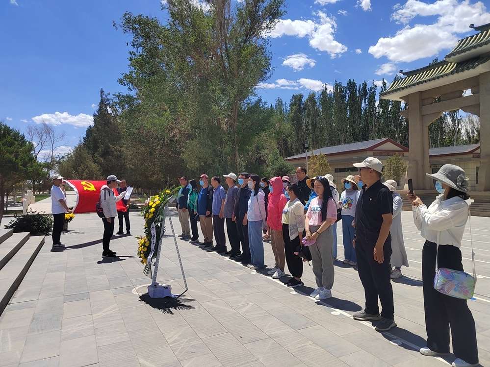在东风革命烈士陵园,酒泉日报社全体党员在烈士纪念碑前,凝视党旗,庄严地举起右手,重温入党誓词,表达对党的事业的无比忠诚和对英勇牺牲的革命烈士的无限缅怀。宣誓结束后,全体党员共同瞻仰烈士纪念碑,敬献花篮,缅怀革命先烈,追忆峥嵘岁月,接受党性洗礼。