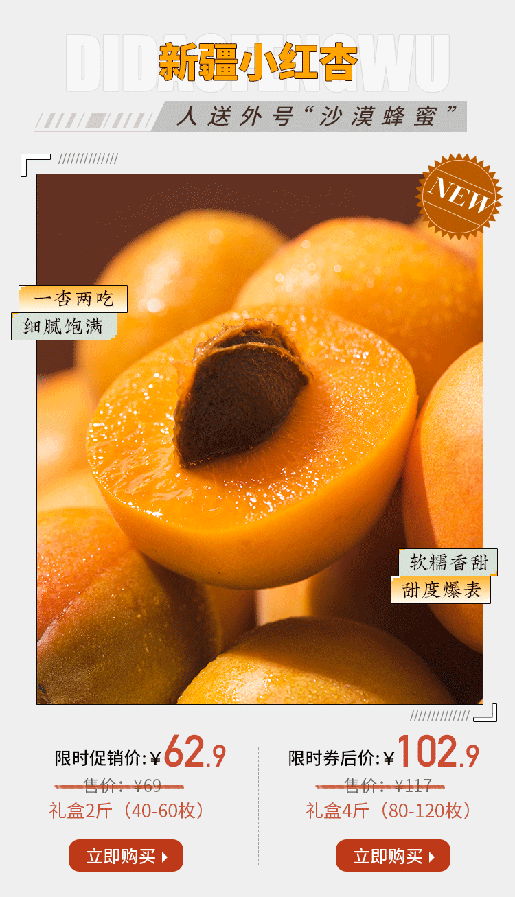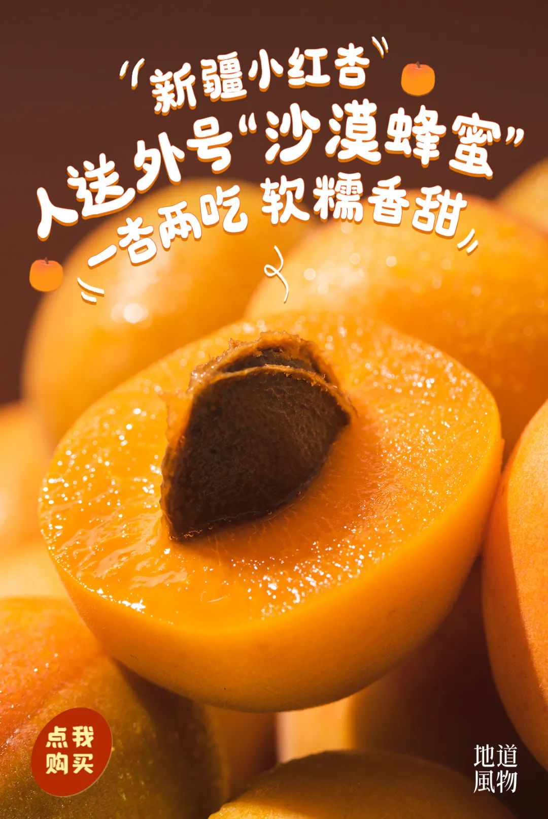 甜!和小白杏一样,来自新疆阿克苏的小红杏也是超脱了人们对于杏都是酸掉牙的认知,温柔的果肉中嵌着丰盈甘洌的汁水,一下子就甜到心里,被人们称为“沙漠蜂蜜”。