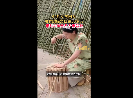 “宠物很喜欢,网友评价也很棒。”刘霞冰还透露,因为是纯手工编制,刚开始生产量完全跟不上,后面请了师傅一起来做,情况就好了很多。现在,刘霞冰带动400余名乡亲投入竹编猫窝生产,日销可达50多万元。