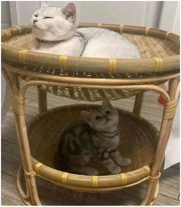 购买过竹编猫窝产品的网友认为“真的很好看很实用,比那些塑料的结实又比金属的透气自然”,还有网友表示家里有同款、用不坏,甚至网友幽默评论“菜篮可以叫移动猫窝”。