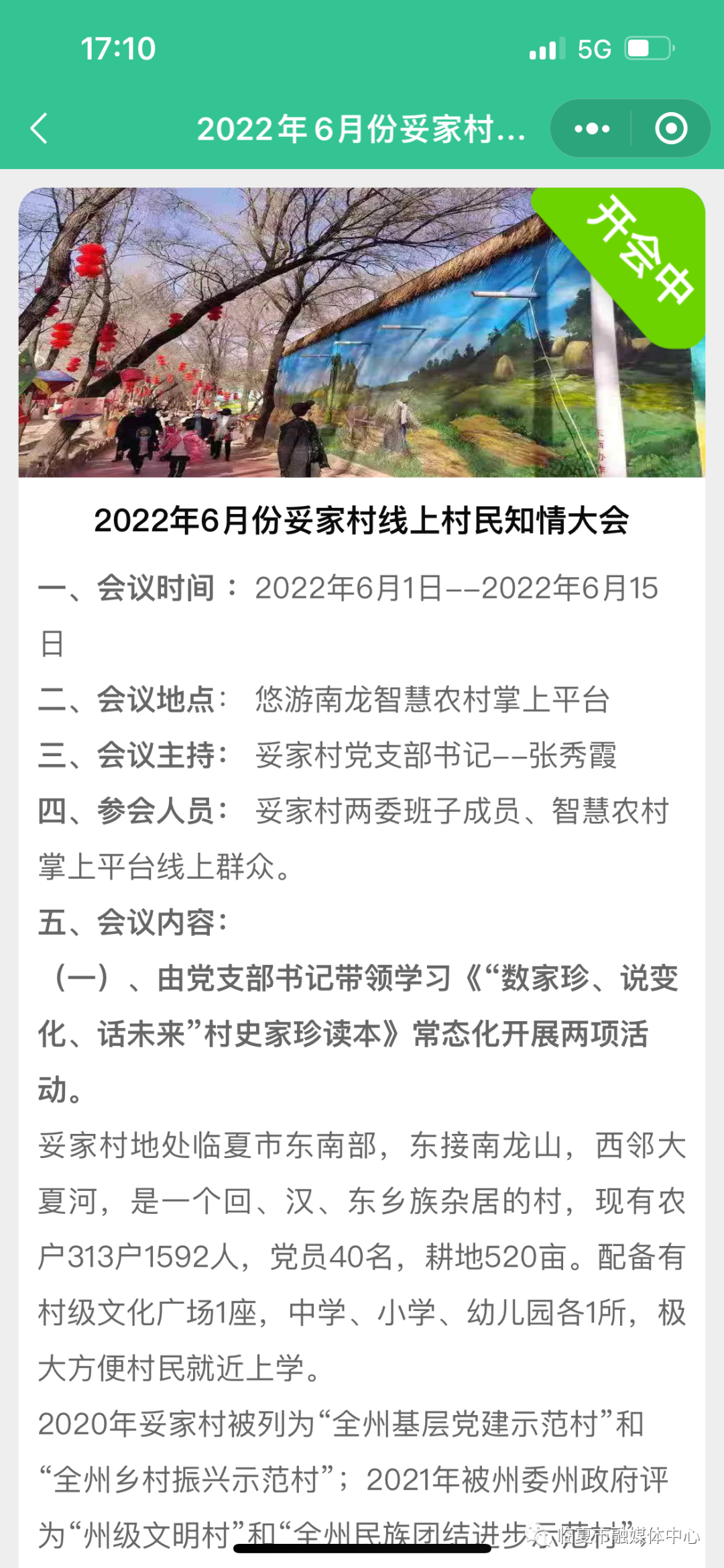 民生需求在哪里,党建引领就覆盖到哪里,针对农村大部分青壮年外出务工,留守老人和妇女儿童比较多,对村级事务关注度不高等问题,市上依托智慧农村小程序,将线下村民知情大会搬到线上召开,有效畅通基层民意表达渠道,将乡村治理的主动权由“村上指导”转变为“村民主导”,构建乡村治理“共建共治”的良好格局,提升了村级事务决策民主化、科学化、智慧化水平。