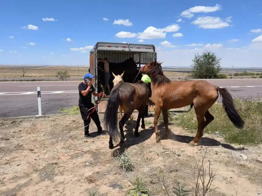 马群主人李某某告诉民警,这七匹马要从新疆送往山西,途经定武高速,他发现路旁草长得好,便想在这里让马群吃点草。谁曾想,刚把马群放下车,民警就来了。