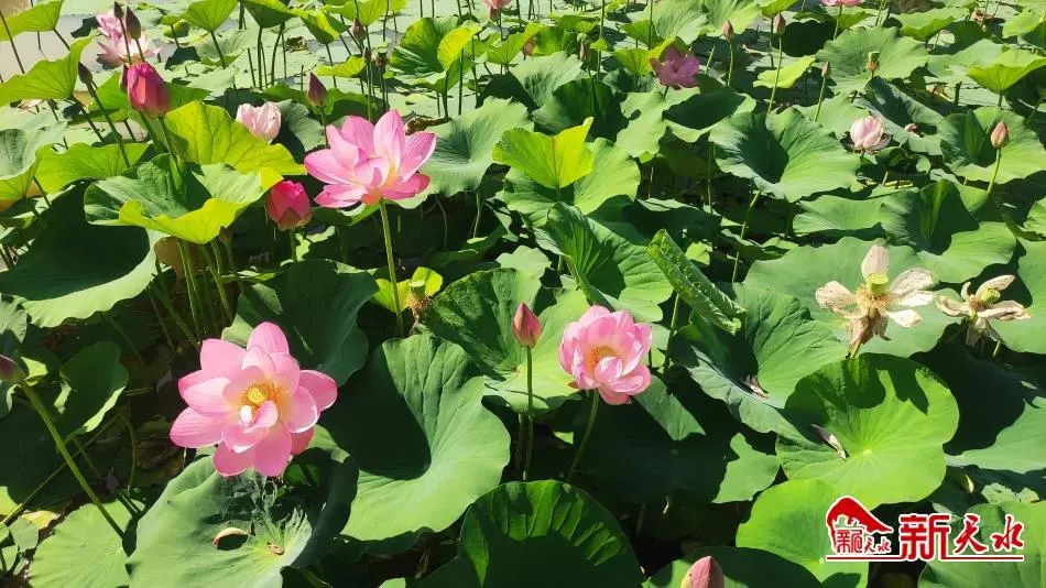 荷花相继开放,争奇斗艳