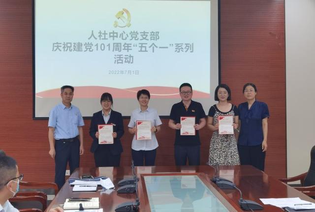 淄博7月1日讯 为庆祝中国共产党成立101周年,扎实推进党史学习教育常态化长效化,激发广大党员爱党爱国热情,迎接党的二十大胜利召开,7月1日,淄博高新区人社中心开展了庆祝建党101周年“五个一”系列活动。