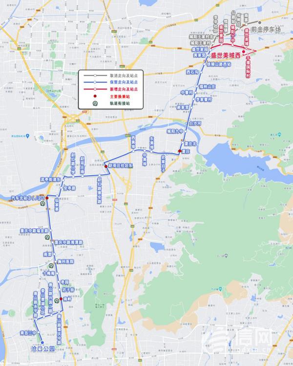 线路副站由前金停车场调整为盛世美域西,调整后为沧口公园-盛世美域西。