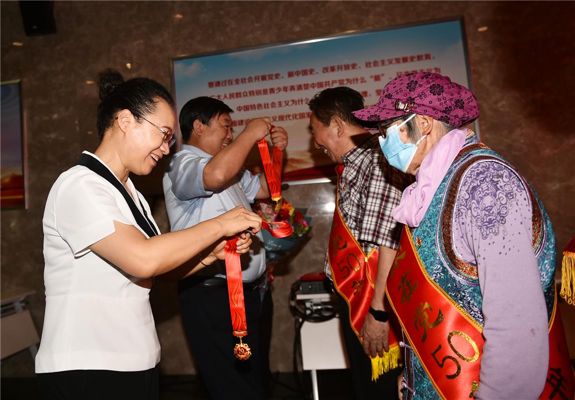 活动现场,内蒙古日报社党委书记、社长吴海龙,内蒙古日报社党委副书记、副社长、总编辑刘婧,自治区妇联副主席郑剑虹分别为报社2022年度光荣在党50年的老党员颁发纪念章,为新党员发放党徽和党章。