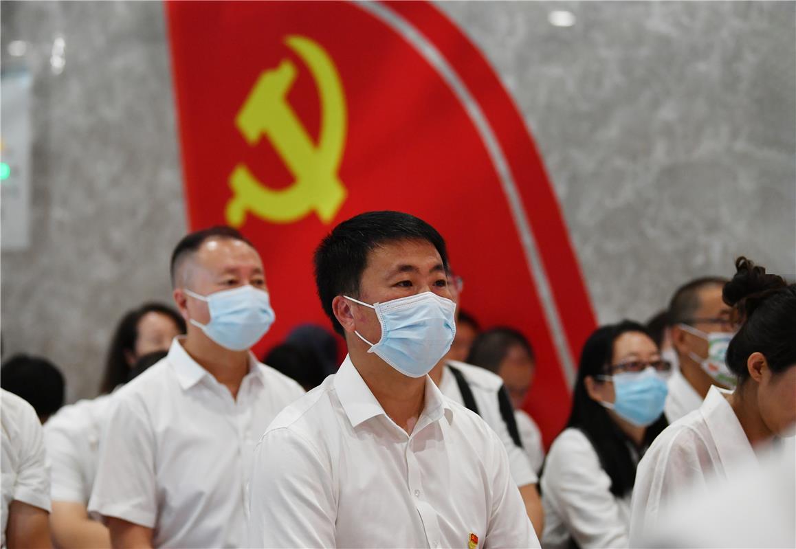 在红色讲堂,大家观看了内蒙古日报社《2022:我宣誓》“七一”主题宣传片;党员代表饱含深情地诵读了共产党人精神谱系,一段段历史唤起大家深植内心的红色记忆,一个个英雄人物的感人事迹引发现场人员强烈的情感共鸣。