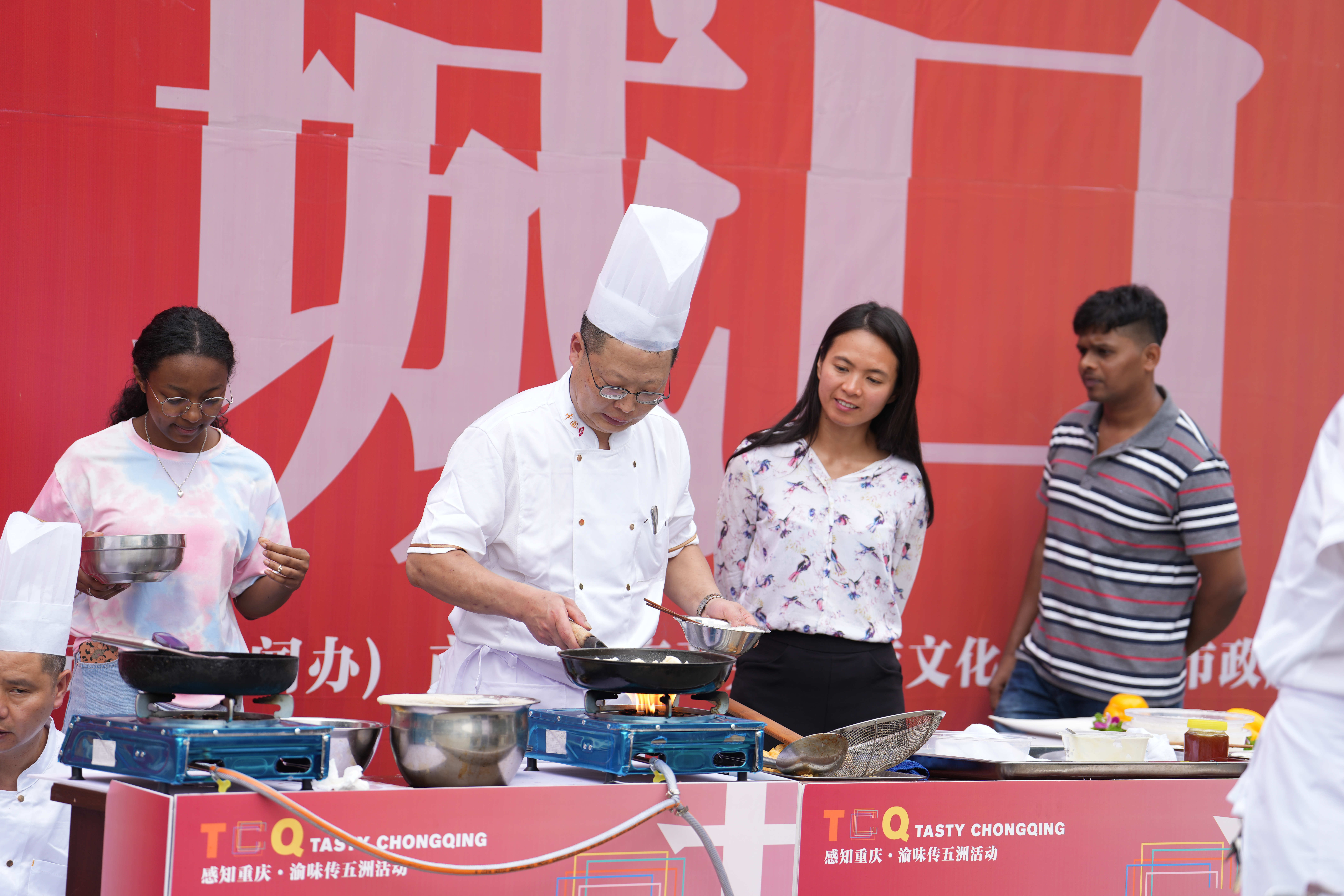 7月1日,感知重庆·好感传播系列活动之渝味传五洲活动来到重庆市城口县,城口各地大厨现场切磋厨艺,多位外籍学徒学习美食制作,以直播的形式带着海内外网友“品尝”大巴山深处的美食。
