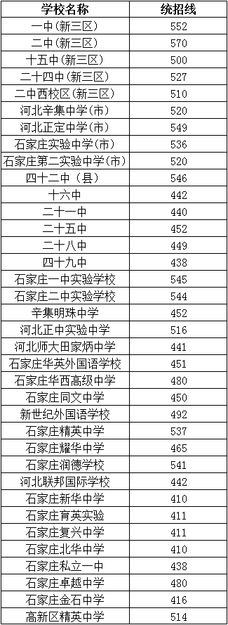 2022年石家庄市中考各类学校招生控制分数线的通知