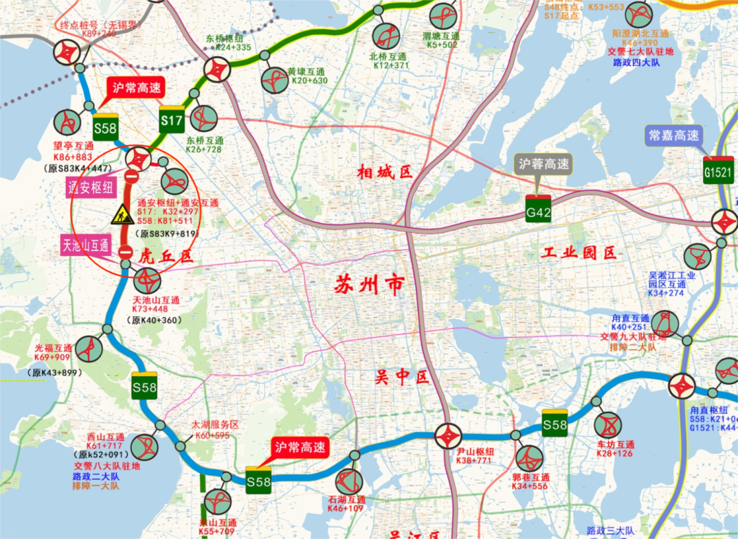 S17苏台高速(上海方向)通安枢纽临时管制措施
