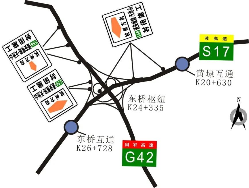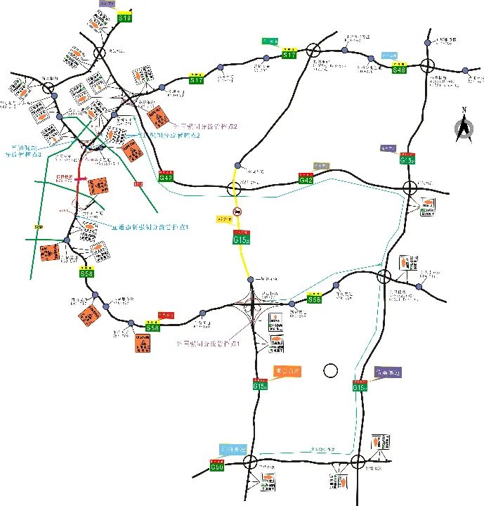 (S17苏台高速(上海方向)通安枢纽交通管制示意图)