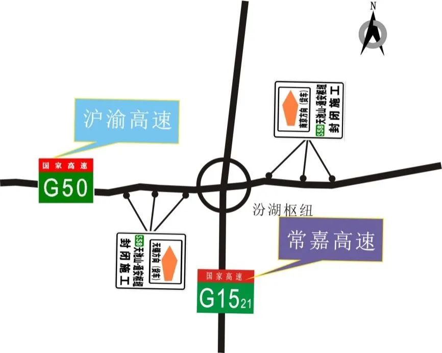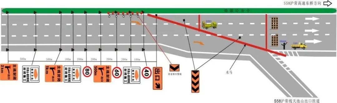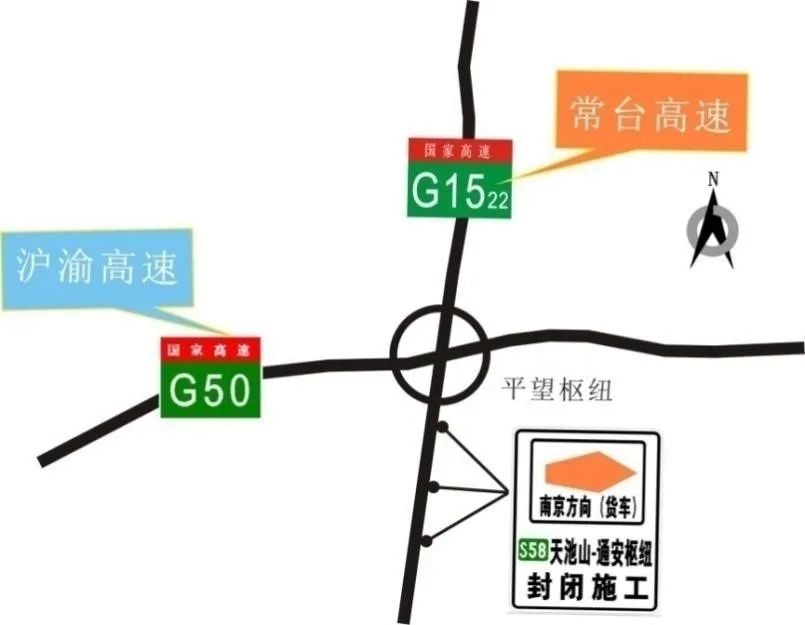 (S58沪常高速(南京方向)天池山互通交通管制示意图)