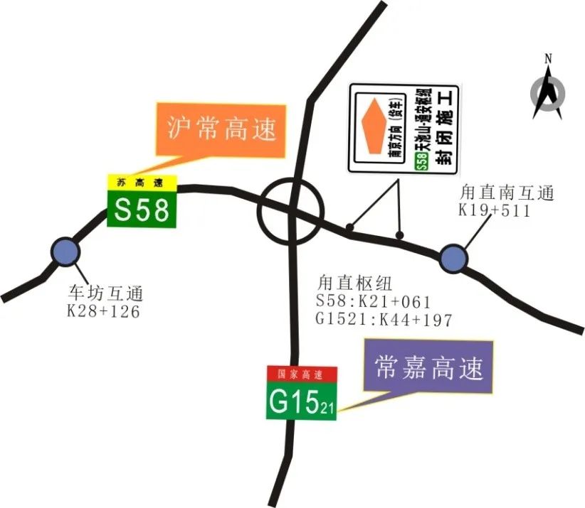 S58沪常高速甪直枢纽东往西(南京方向货车):G1521常嘉高速→G2G42沪宁高速绕行