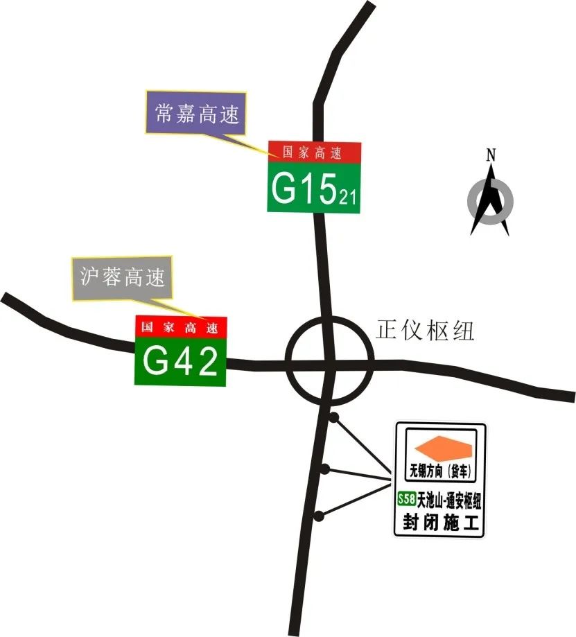 因实施环阳山路西路改造工程施工需要,自2022年7月2日对S58沪常高速通安-天池山互通实行主线封闭施工;自2022年7月3日至2022年7月19日,对S58沪常高速通安-天池山互通实行交通管制(半幅封闭半幅双向通行);施工期间机动车辆按交通指示标志绕行,具体绕行线路如下:
