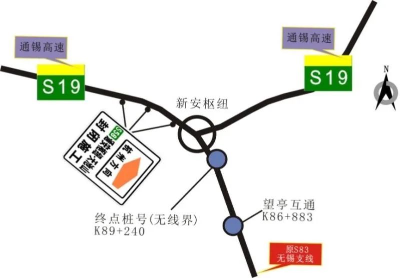S19新安枢纽西往南(杭州方向):S19通锡高速→G2G42沪宁高速绕行