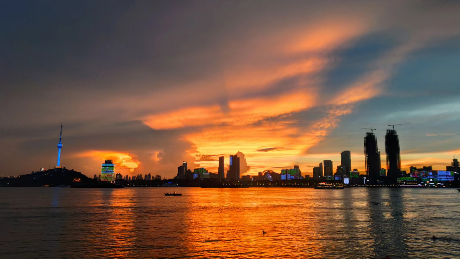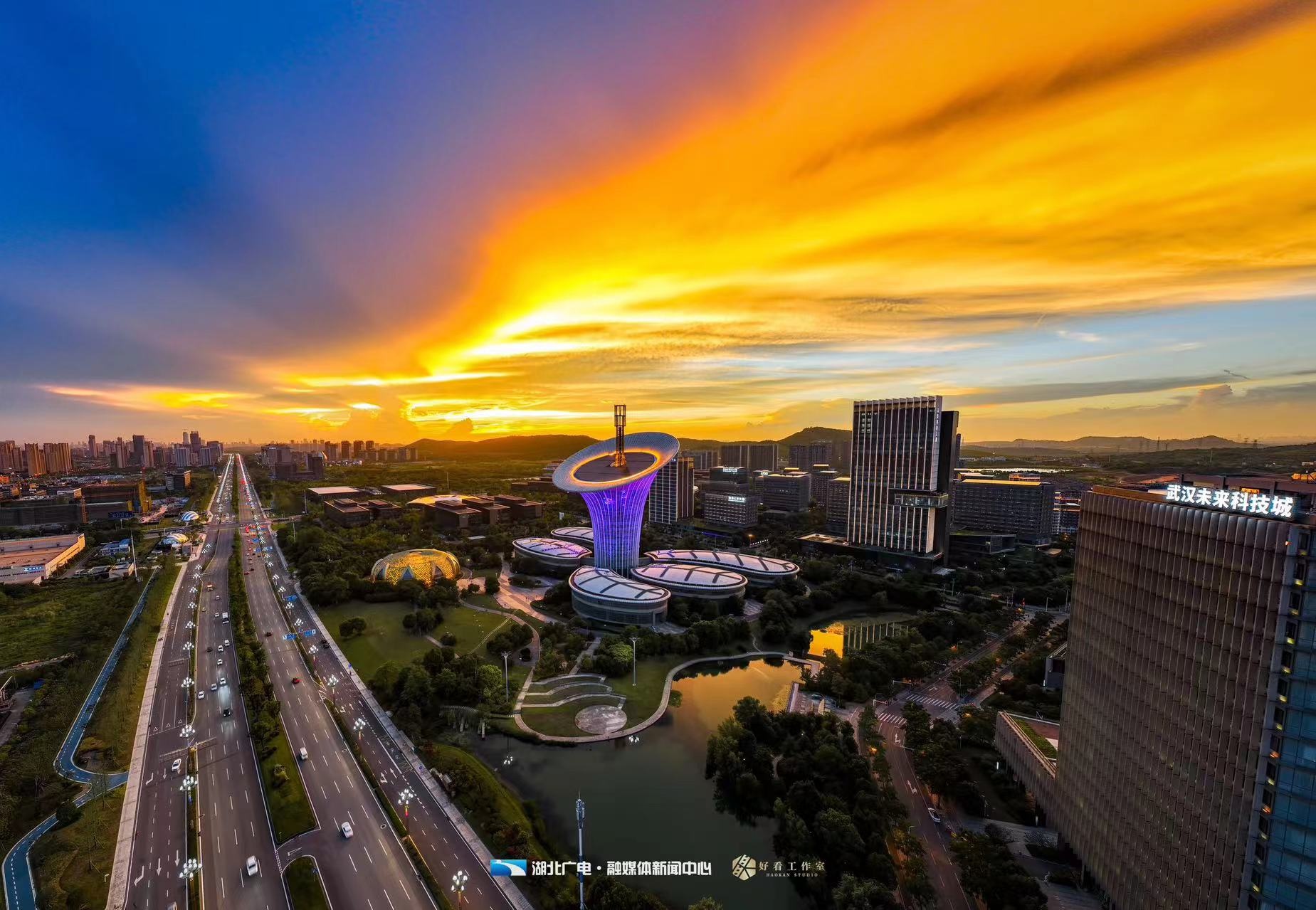 7月2日傍晚,武汉出现罕见晚霞,“玫瑰金霞光”刷爆朋友圈,湖北广电融媒体记者也拍下了油画般的天空。