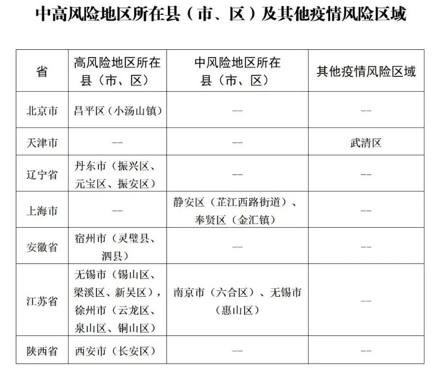 备注:中高风险地区根据国务院客户端查询,其他疫情风险区域根据网络数据整理(近期新增感染者较多的地区)。