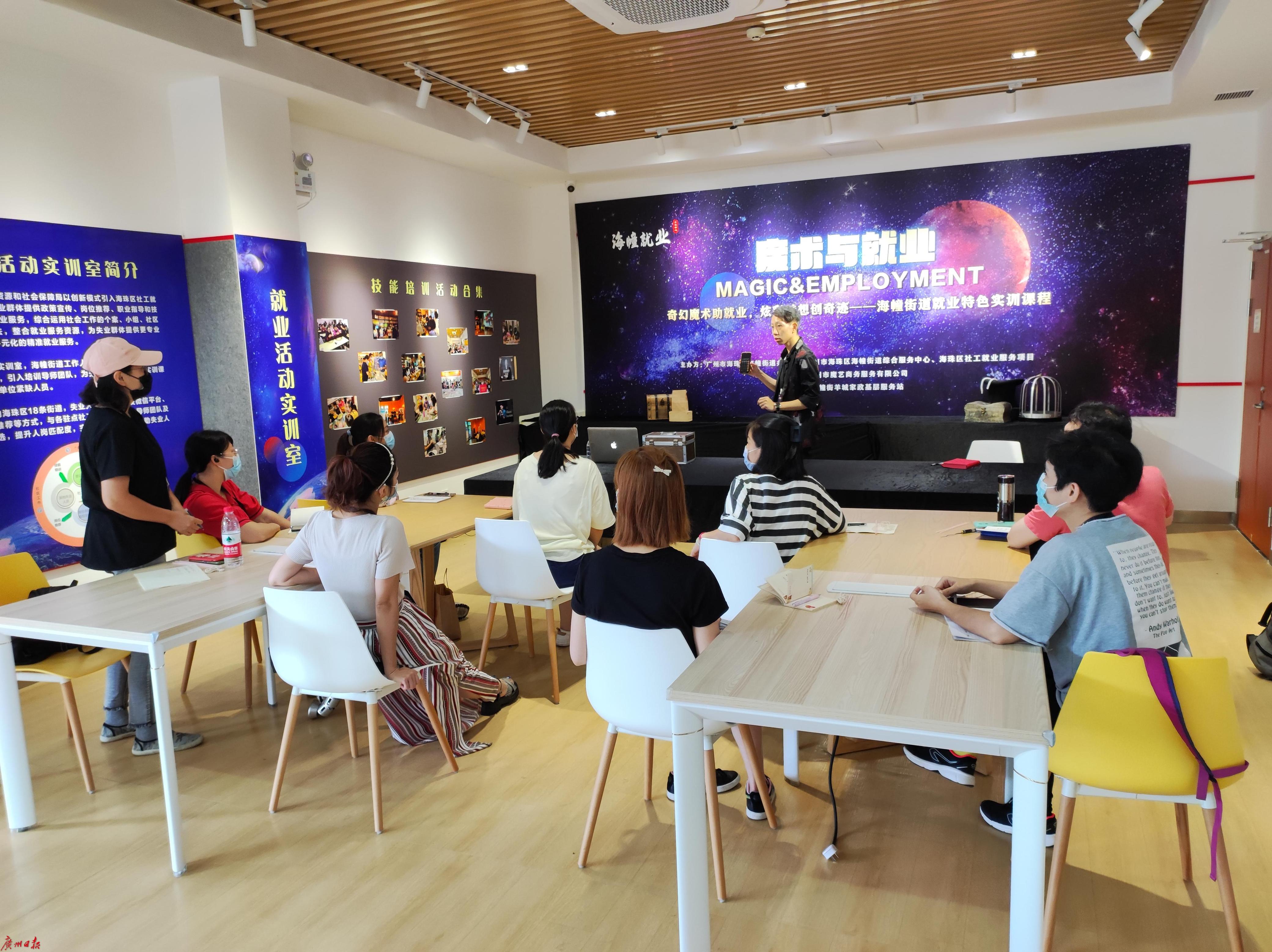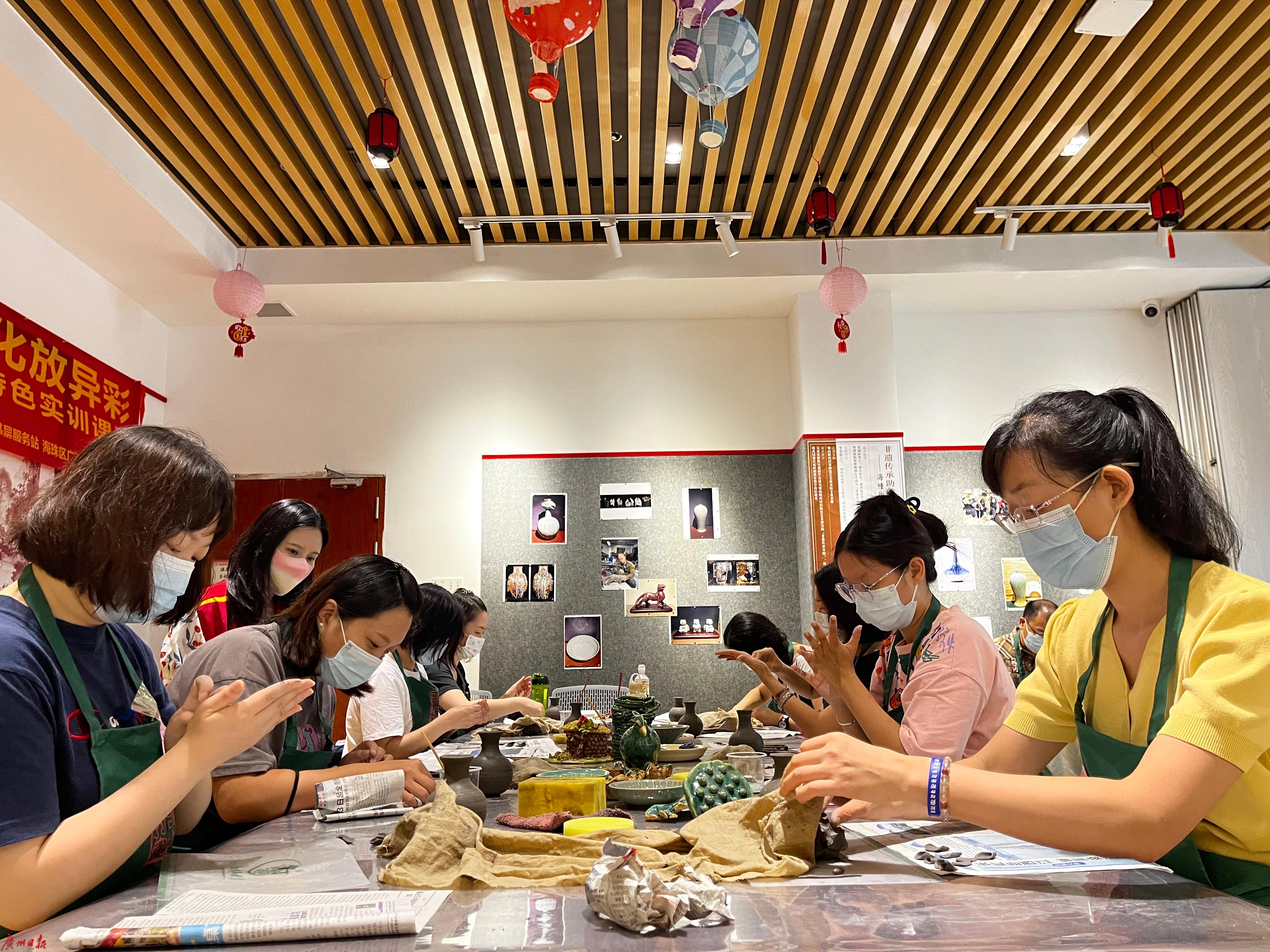 另一方面,海幢街创新开展“职业生涯规划+技能培训+就业对接”服务模式。依托技能培训小组活动,将失业人员培育为用人单位紧缺人才,推动实现精准就业。关晓斌介绍,6月初举办的西村窑特色就业实训课程,将非遗技能人才培育与就业对接相结合,14名结业学员中有13人获得了非遗进校园传承人的资格,预计就业率为92.86%。卢女士是13名学员中第一个成功对接“430”课堂任教的失业人员,“我原来是在教培行业工作的,失业后一直找不到自己喜欢的工作。通过这次课程,我不仅仅学会了新的艺术技能,还能继续从事我喜爱的职业,我真的很高兴。”