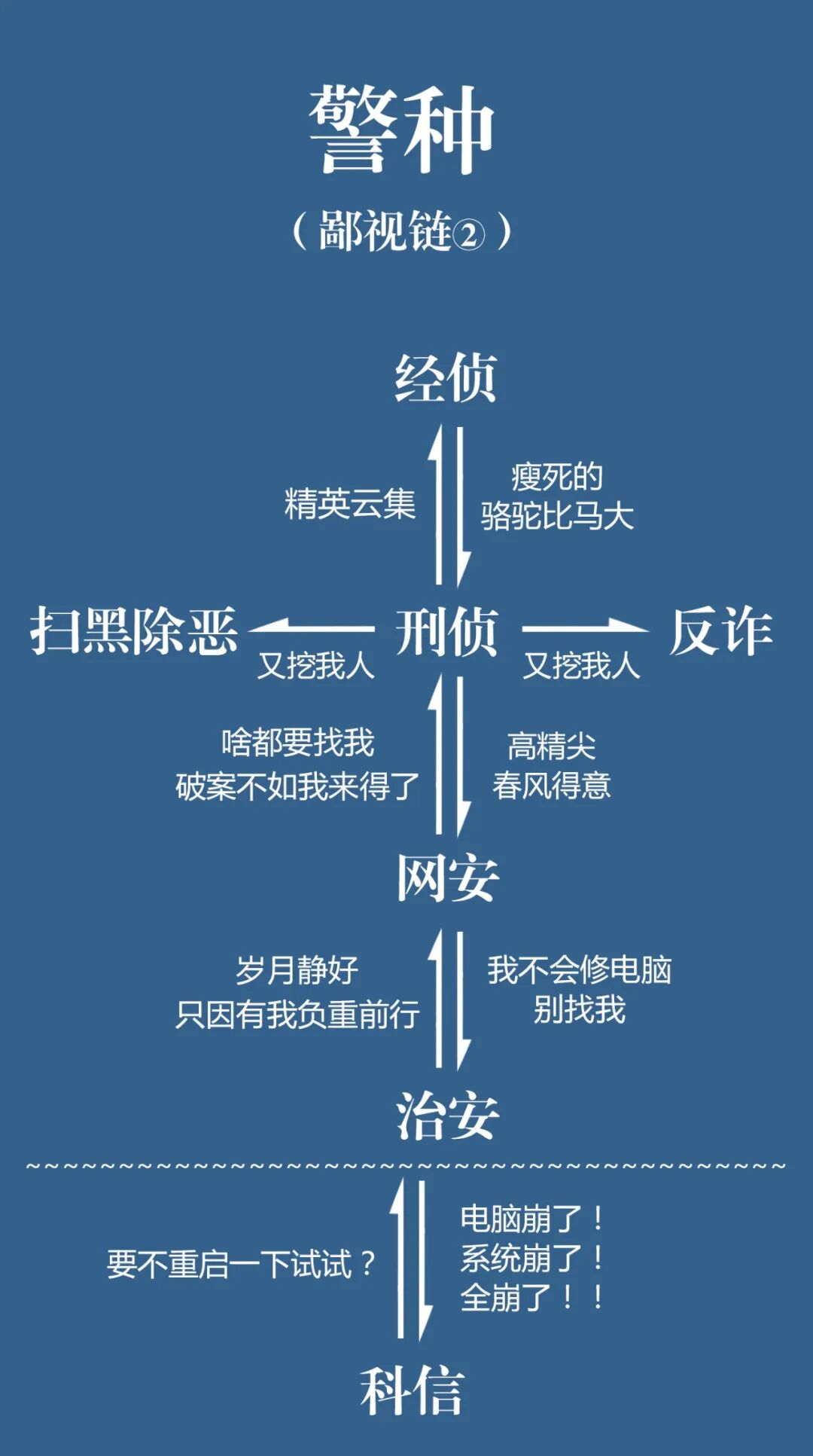在和平年代,警察面对着形形色色的挑战与风险,内部条线分工明确,有时候甚至在公安内部都有“隔行如隔山”的感悟。而因为经常工作忙成狗,条线之间也少有互相了解的机会,有时候难免会有吐槽与相爱相杀。