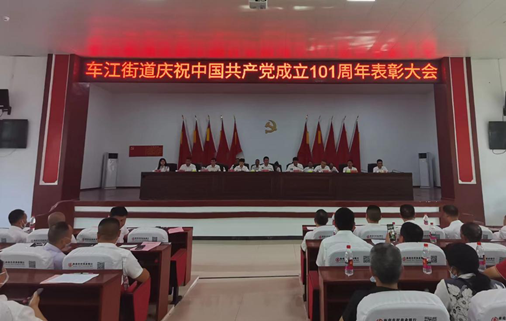 7月1日上午,衡南车江街道召开庆祝中国共产党成立101周年暨“七一”表彰大会,街道机关全体党员干部、村(社区)党组织书记、驻村(社区)第一书记、“两委”班子成员、站办所党组织书记、预备党员及受表彰对象等229人参会。街道党工委副书记、办事处主任倪小聪主持会议。