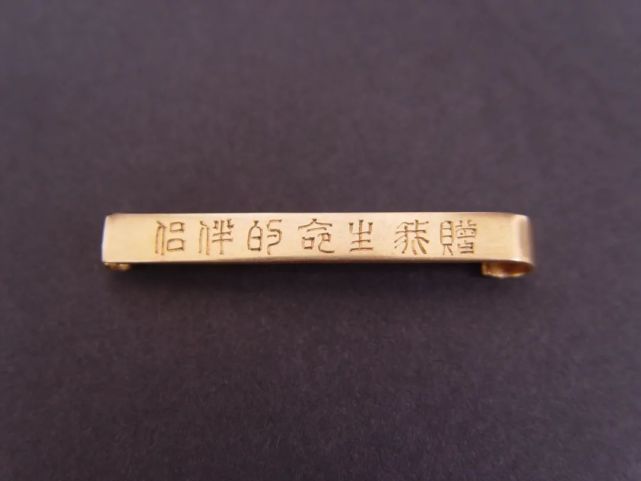 其中,还有来自常州博物馆的一级文物——1924年瞿秋白赠妻杨之华金别针。这件金别针是中国共产党早期主要领导人、中国革命文学的重要奠基人——瞿秋白同志,送给他的夫人、中国著名妇女运动先驱者杨之华的信物。1923年,瞿秋白来到党的诞生地上海,担任上海大学的教务长兼社会学系主任。第二年,杨之华也考入这所学校。在办夜校、传播革命思想的并肩战斗中,两颗年轻的心灵相识相知,越走越近。1924年11月,中共四大召开前夕,瞿秋白和杨之华在上海正式结婚。为纪念他们的结合,瞿秋白在一枚金别针上亲自篆刻“赠我生命的伴侣”七个字送给杨之华。