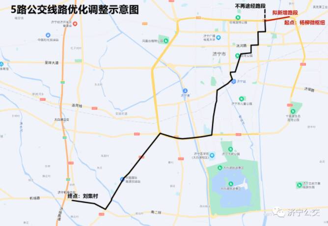 (三)优化调整后途经站点:杨柳微枢纽—杨家河公园—华都金色兰庭—长虹路机电路—长虹小区—创新大厦—置城8号公馆—市人才大厦—祥和花园—市公安局—明珠花园西门—明珠中心小学—第二人民医院—银座商城—聚龙驾校—鲁塑烧烫伤医院—解放路—汽车南站—济宁火车站(西)—口腔医院洋桥院区—王母阁高架桥(东)—南辛庄—市中西医结合医院—碧桂园天绘—张堌堆社区—永润广场(东)—龙贵购物广场—许庄—山东理工职业学院—理工学院南门—孙井小区—济宁大道换乘站—济宁大道路口—西正桥—后王—前王(唐口)—常户—鲍屯—唐口街道办事处—大唐商城—济宁二中—小康街—赵王河桥—范李庄村—唐口万福泉宾馆—东王堂村—前王堂村—史庄村—刘集村