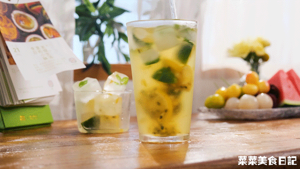 这款茶冻主打百香果热带风味,香气与甜度都足够,加入青桔和话梅,分别又赋予酸与咸的多重滋味。
