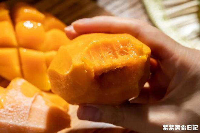 经过一夜冷冻,芒果浓郁的香气变得柔和,回温5-10分钟后入口,直接原地封神!