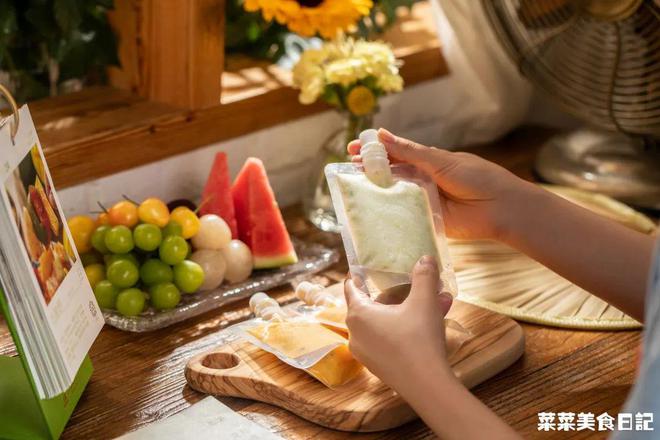 顺道教大家一个方便又卫生的储存方式:可用挤挤袋储存成水果吸吸冰,每次吃一袋,冷冻密封保存半个月都没问题。