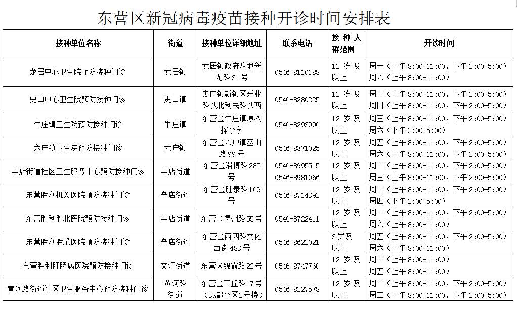 齐鲁网·闪电新闻7月4日讯 近日,东营区卫生健康局发布消息,因工作需要,现对东营区新冠病毒疫苗接种开诊时间进行调整,新开诊时间于2022年7月4日开始执行,现将东营区新冠病毒疫苗接种开诊时间安排公示如下。
