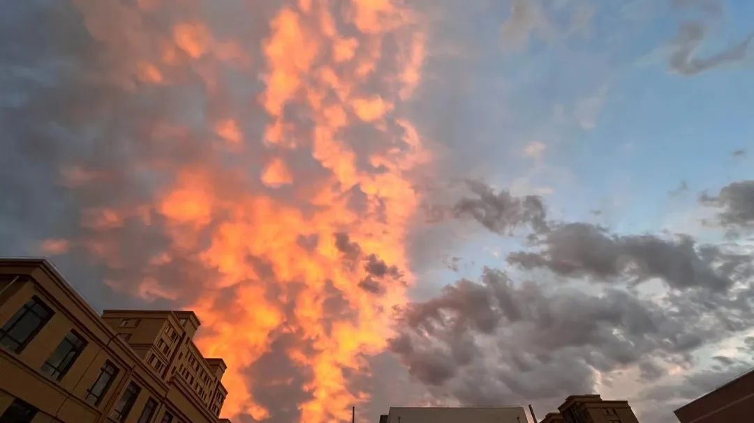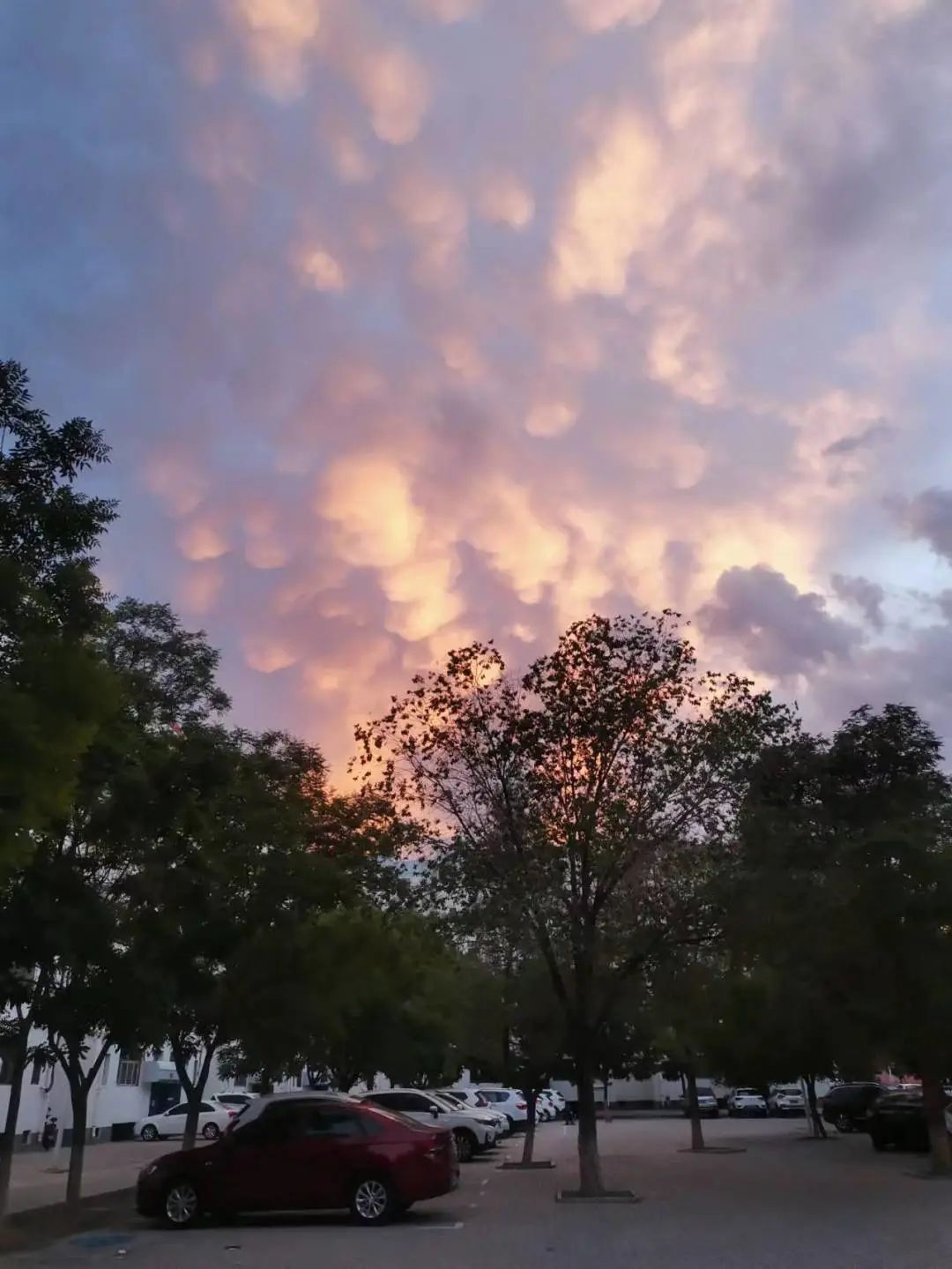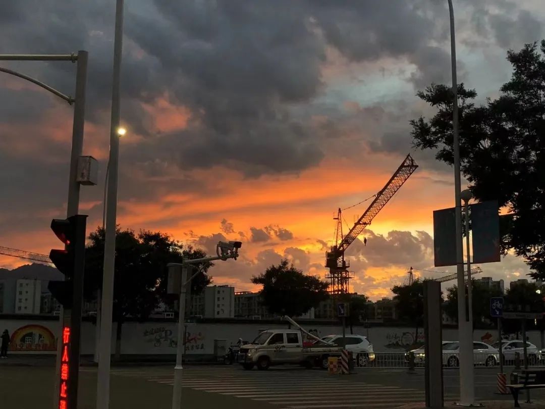 第一次感受到什么是“夕照红于烧,晴空碧胜蓝”,打开相机,感觉连滤镜都可以省了。