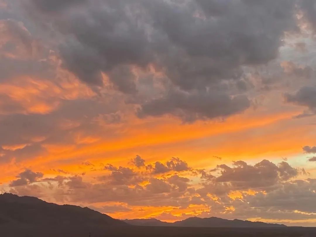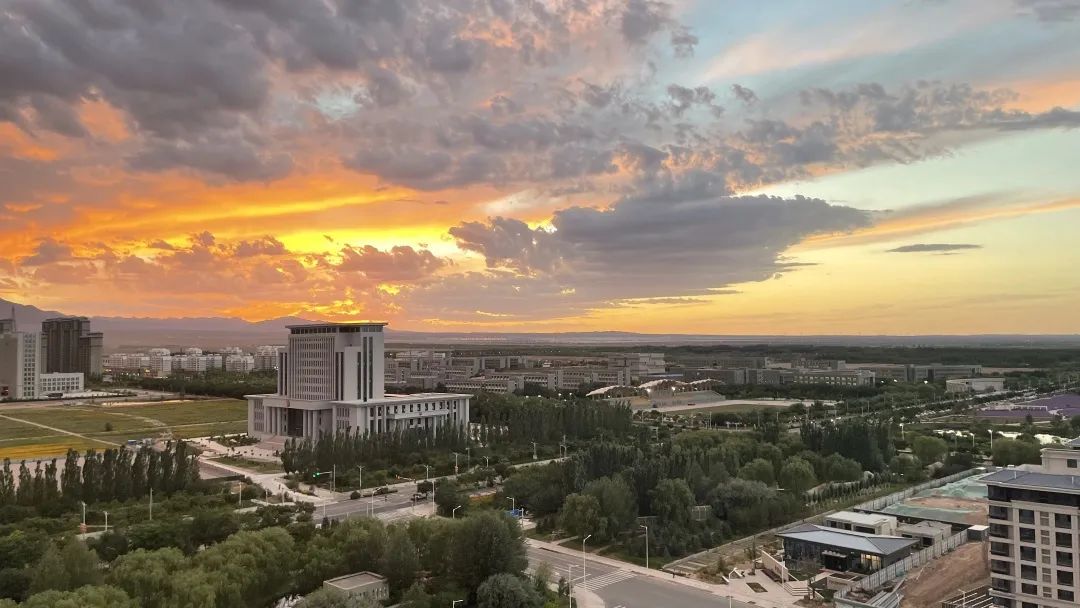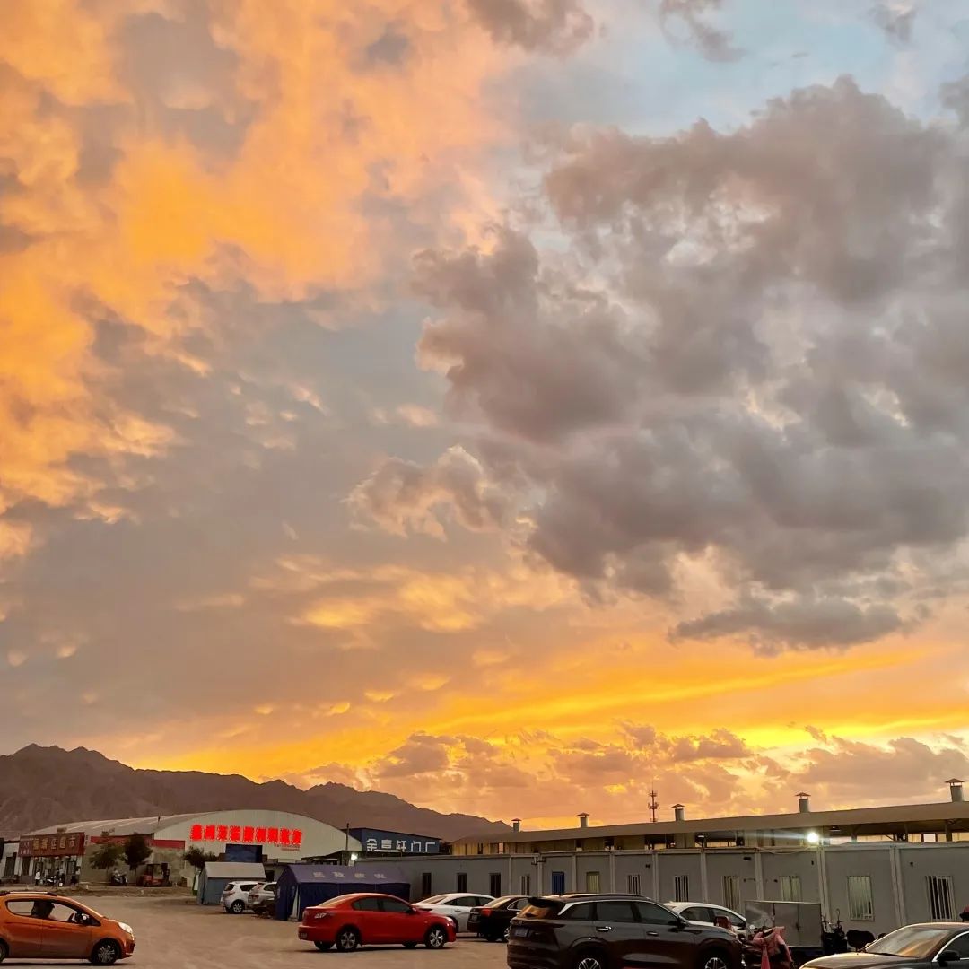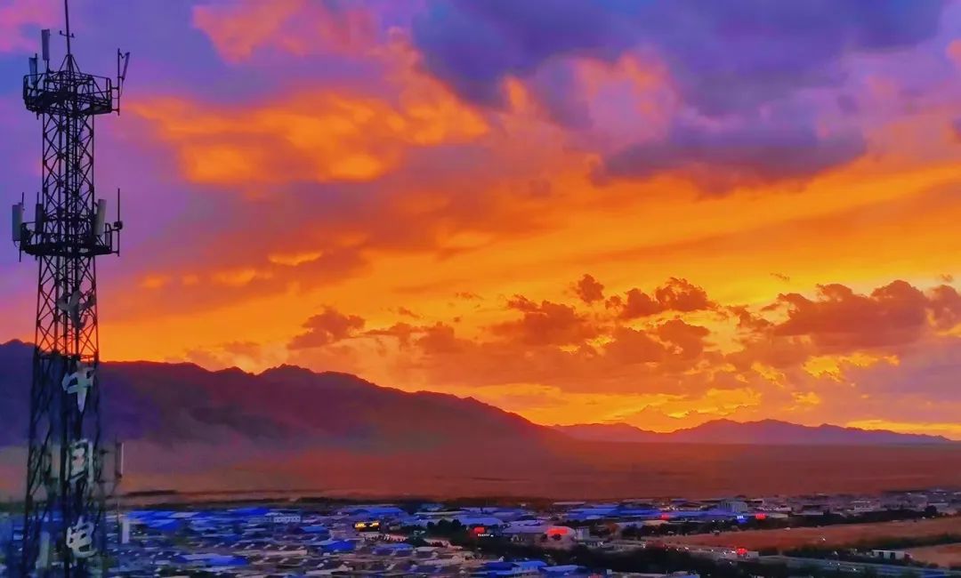 在夜幕来临前,太阳用尽余热把金昌染上了一片橘色。
