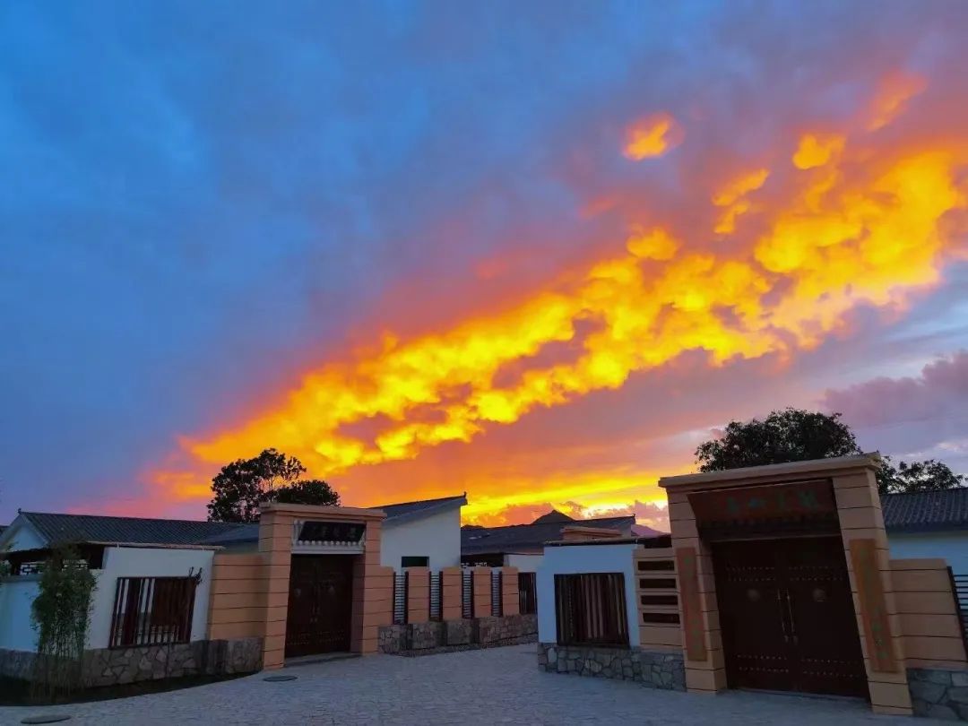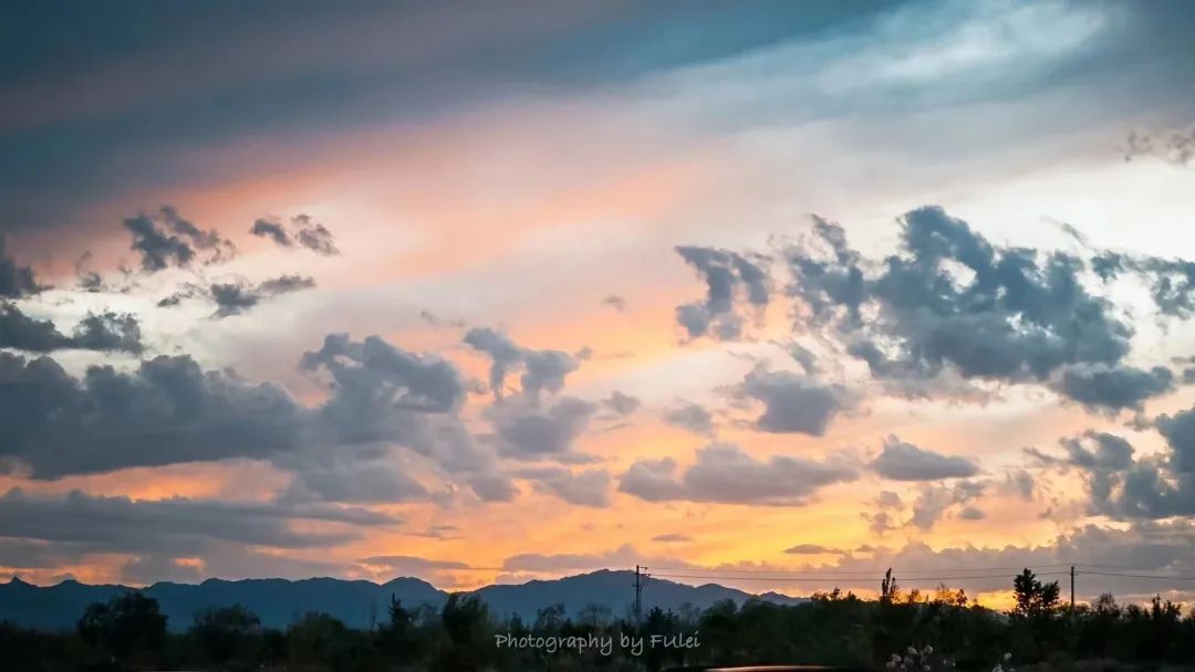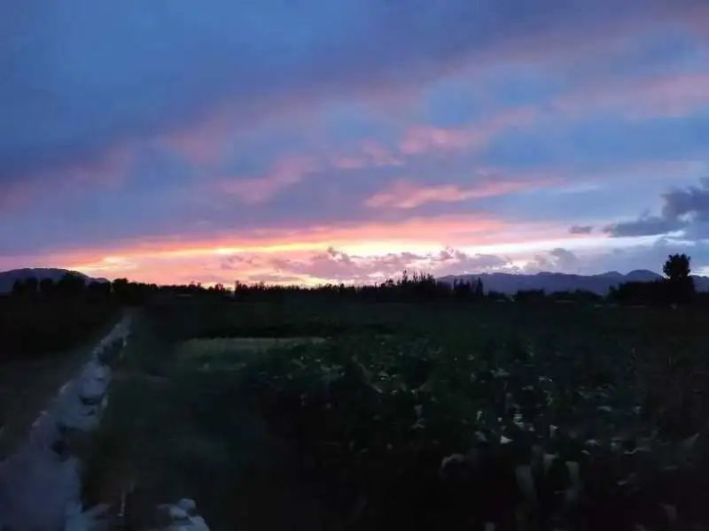 龙首山的对面,一团耀眼的光球正在依依不舍地往下沉,它在地平线洒下橘色星光。