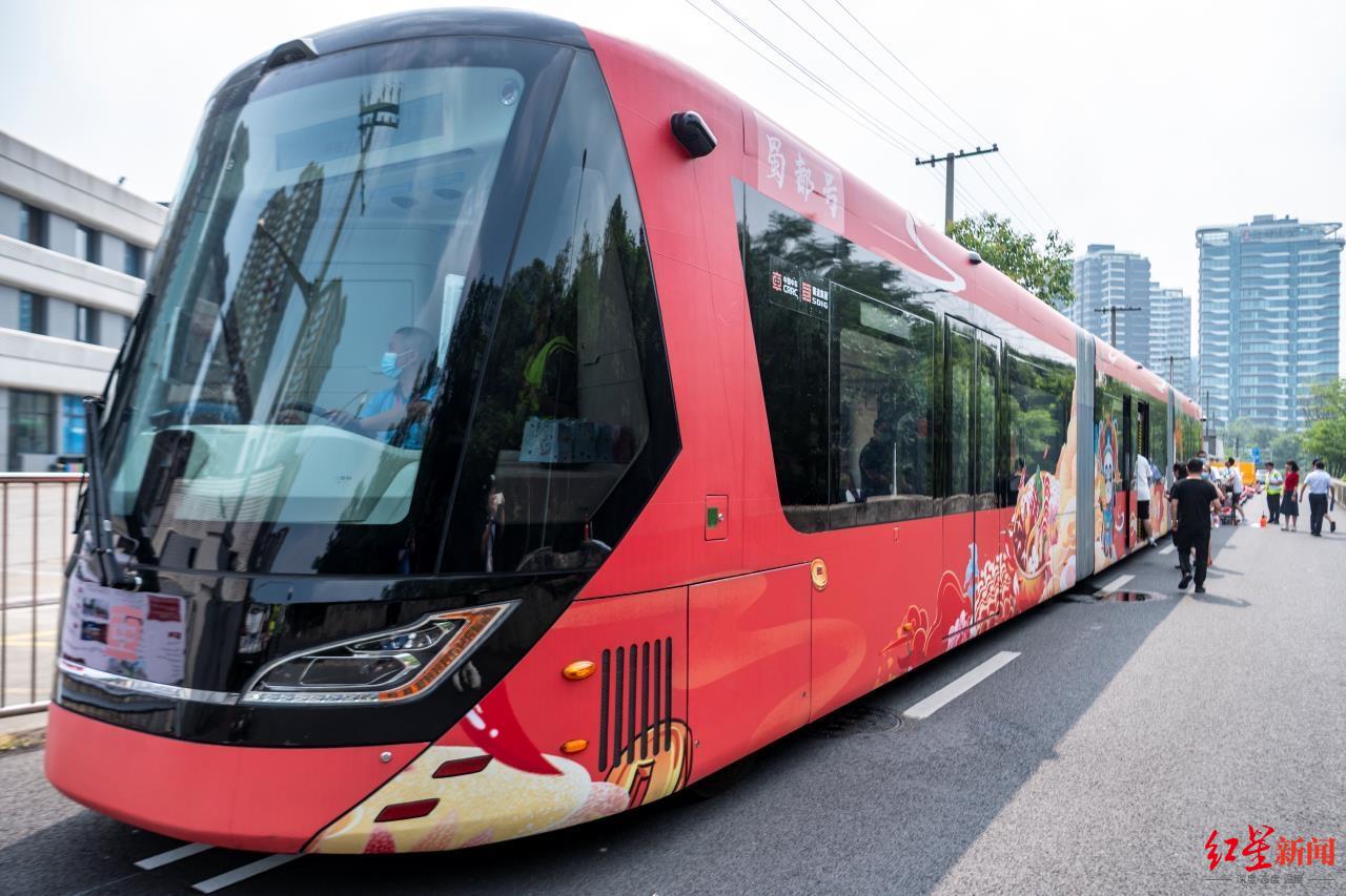 7月4日,红星新闻记者从蜀道集团获悉,今日上午“蜀都号”“天府号”智轨列车在成都首次亮相,正式载客试跑,向成都市民直观展示了智轨优质运营服务,推动智轨列入成都市低运量轨道交通建设规划。