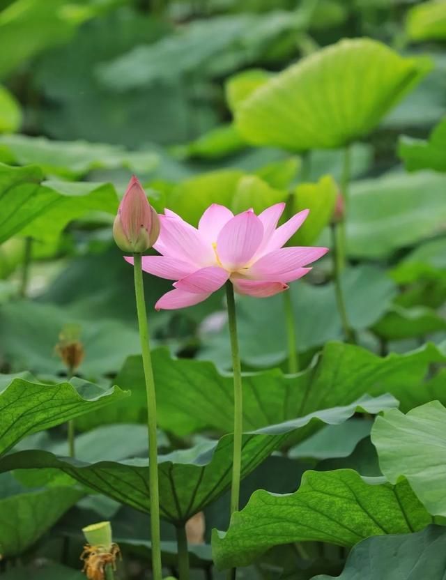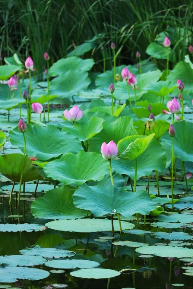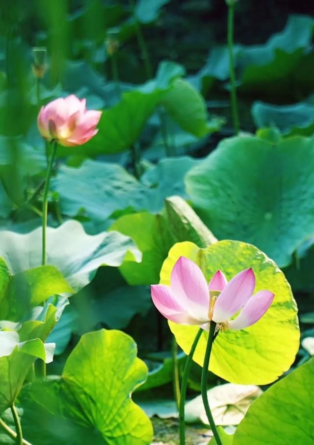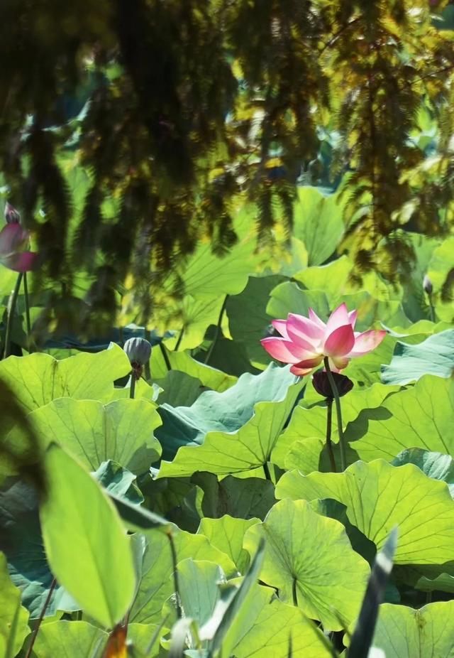 这里的荷叶,高高低低,荷花的姿态有的完全绽放,有的还在含羞,恣意蔓延,野趣横生。