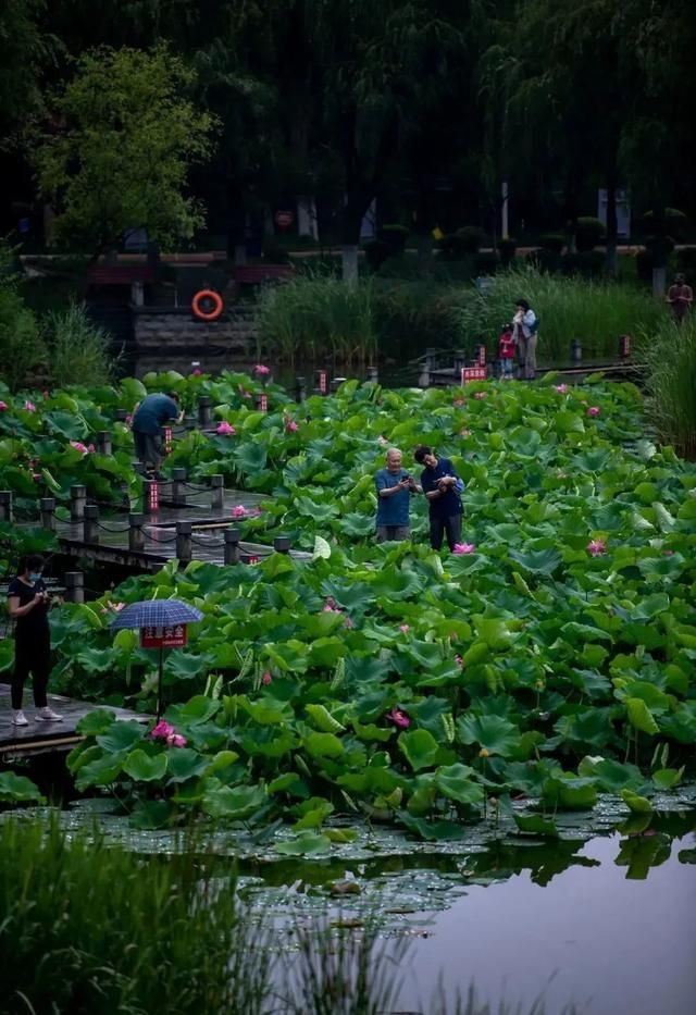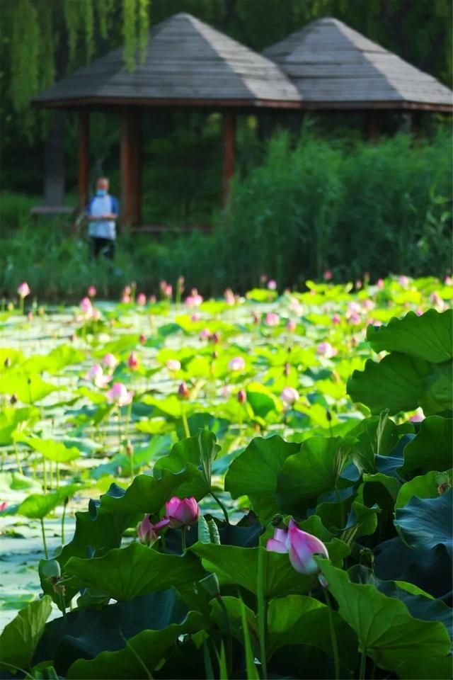 在济南,赏荷花一定不能错过植物园,这里是4A级景区,占地有1000多亩,其中水域观赏莲占有2000平米,共有5000多株。