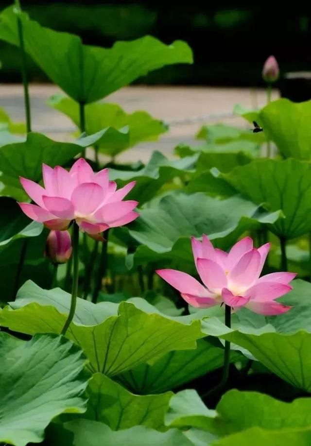 这里的荷叶已经高高低低铺满了湖面,碧色连天,亭亭玉立的荷花冲出层层绿叶,犹如娇羞美人,尽情舒展身姿。放眼望去,那一朵朵荷花都似姿态不凡的仙子,在微风的吹拂下翩翩起舞。