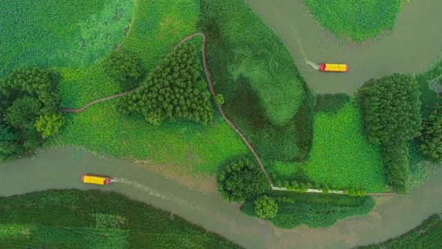 乘着湿地画舫一路前行,只见一幅“接天莲叶无穷碧,映日荷花别样红”的画卷在眼前展开,微风吹来时,不禁也想吟诗作赋一首,怕辜负这诗意般的唯美画境。