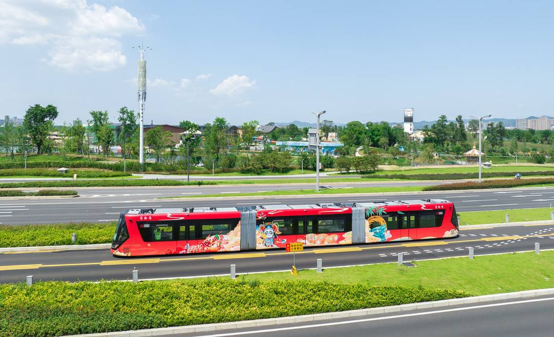 7月4日,由蜀道集团投资运营的“蜀都号”“天府号”智轨列车在成都首次亮相,正式载客试跑,向成都市民直观展示智轨优质运营服务,推动智轨列入成都市低运量轨道交通建设规划。