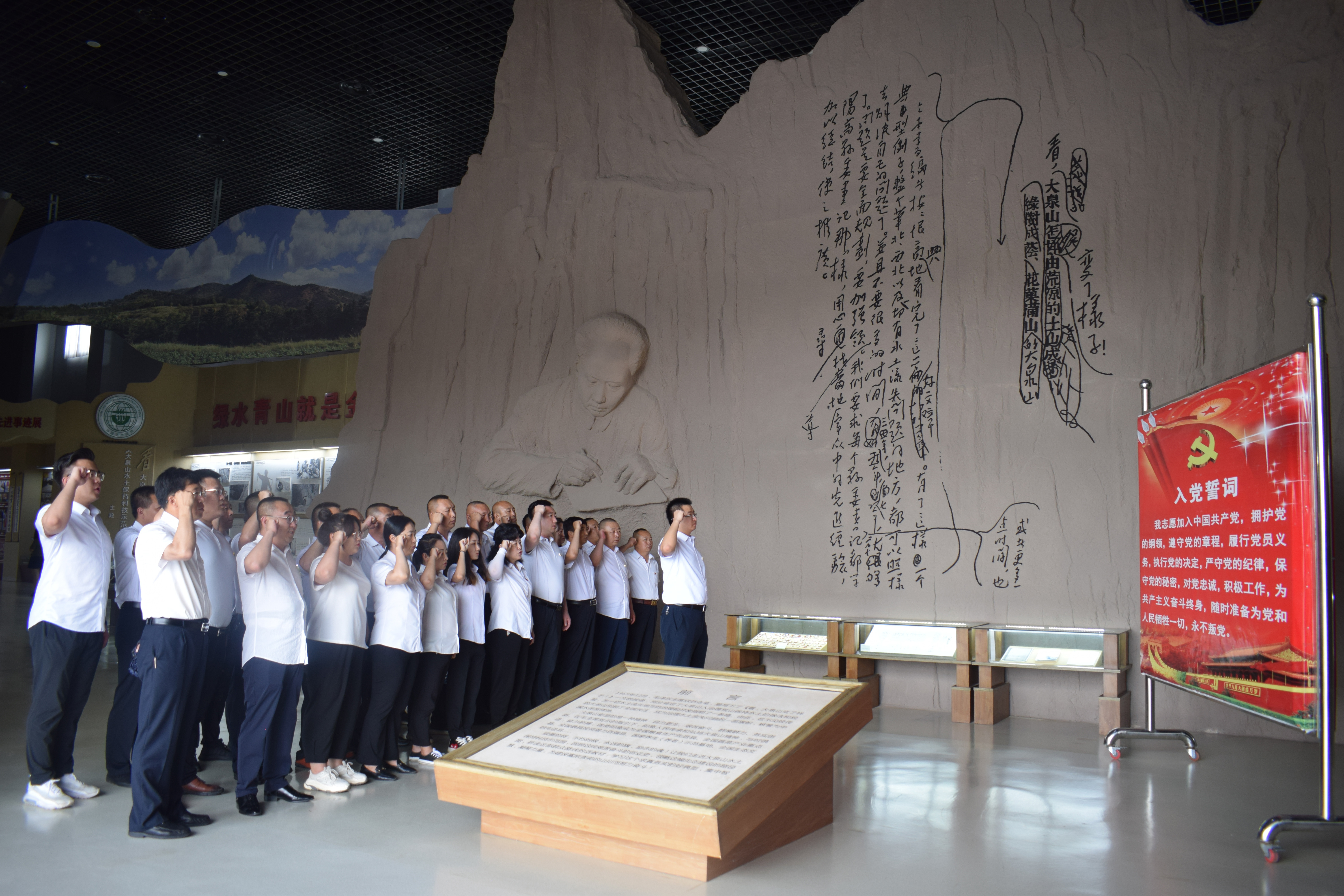 随后大家来到大泉山展览馆参观学习,重温了入党誓词。通过聆听讲解、观看珍贵详实的照片和历史资料,了解到上世纪50年代阳高县委、县政府带领广大党员干部群众坚持不懈植树造林、治理水土流失的艰辛历程,感悟了毛主席批示的《看,大泉山变了样子》的殷切期望和老一辈共产党员披荆斩棘、艰苦奋斗的伟大壮举。