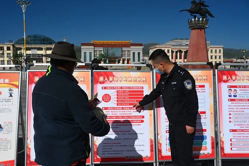 中共中央、国务院《信访工作条例》已于今年5月1日施行。为做好《信访工作条例》的学习宣传,进一步营造依法信访、理性维权的良好氛围,积极引导牧民群众依法文明有序信访。7月4日,果洛州公安局信访办联合治安支队、刑警支队、禁毒支队、反诈中心、扫黑办等部门在格萨尔文化广场开展《信访工作条例》集中宣传活动。