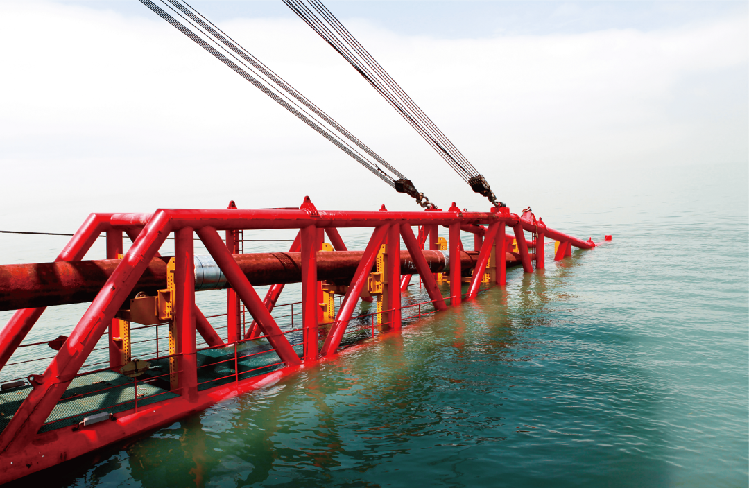 西气东输二线建成国内首条天然气长输海底管道。图为2012年3月,西气东输二线工程海底管道铺设施工现场。