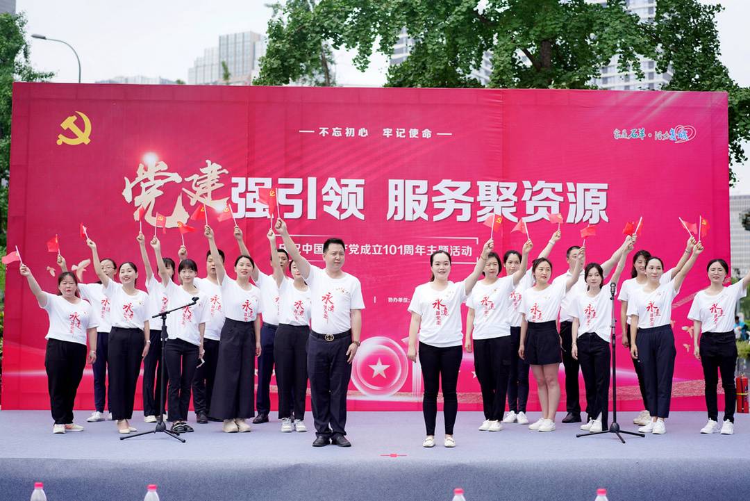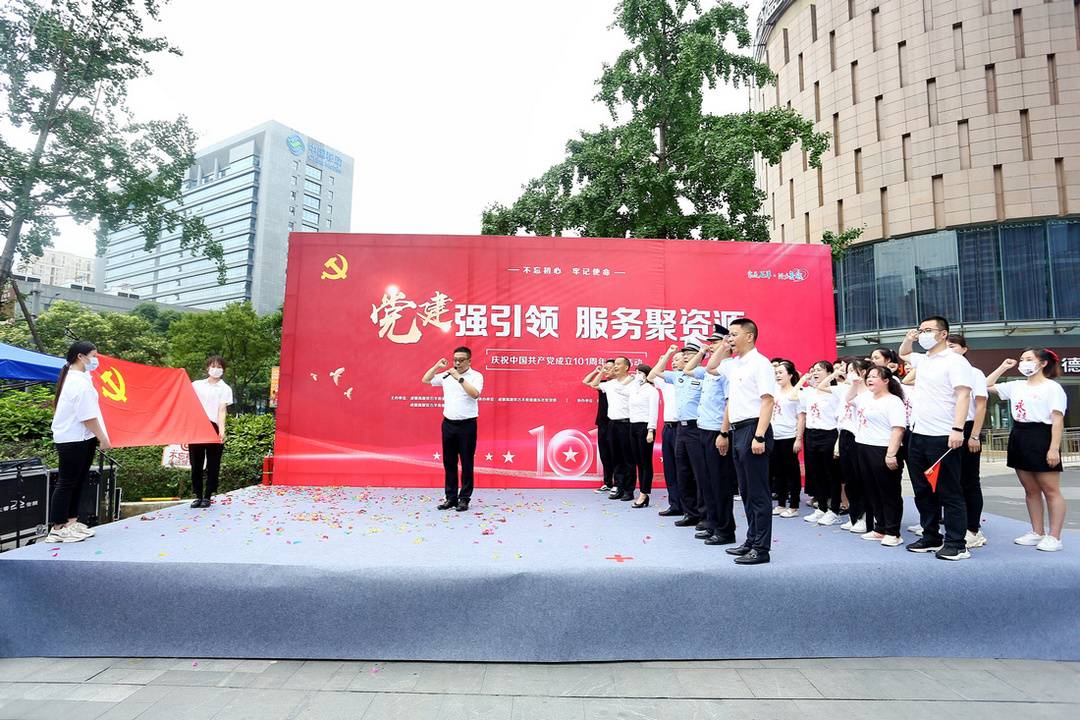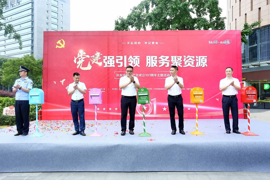 6月30日上午,由成都高新区石羊街道党工委、办事处主办,石羊街道盛乐社区党委承办,石羊街道复城国际楼宇综合党委协办的“党建强引领·服务聚资源”——石羊街道盛乐社区庆祝中国共产党成立101周年活动在复城国际广场举行。辖区“两新”党组织党员代表、企业代表等共计50余人参与活动。活动上,高新区复城国际楼宇实现党建服务品牌的再升级。