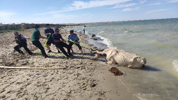 接到报警求助后,值班民警立即带领人员赶到现场。经查看,由于天气炎热,附近的牛儿走到湖边喝水冲凉,不经意间向湖中心走去,湖底是细软的泥沙,牛儿自身较重,随即深陷其中不能自拔。由于风大浪高,眼看牛儿就要溺水,民警在探知到牛儿所陷处水位的情况下,立即下水将粗绳系在牛角上,合力将其往岸上拉拽,但两位警务人员力量有限,牛儿不为所动。这时,湖边的其他游客见状,纷纷前来帮忙。“一、二、三……”大家配合着口号,合力将牛儿拽出泥沙,牛儿似乎也看到了希望,使出力气奋力挣扎,随即成功上岸。
