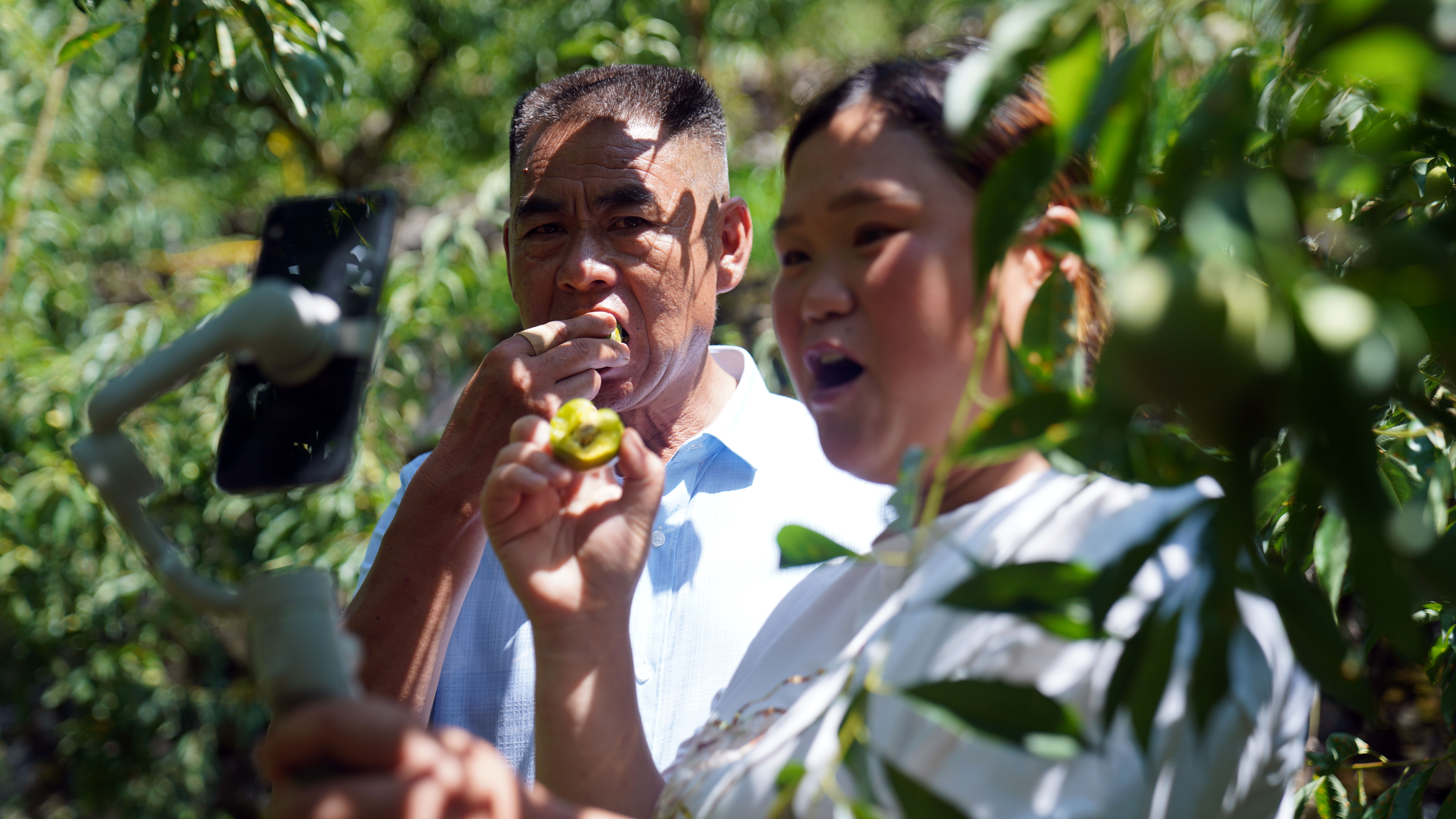 在采摘现场来自各地的游客和慕名而来的种李同行、经销商,看了果园,尝了李子,大家纷纷加入直播帮她推销。“有了奖牌李子硬是好卖得多,采摘和网上卖,大半天就走了2000多斤特级果,收入超过2万了。”