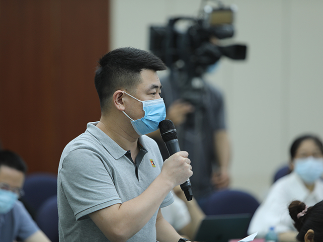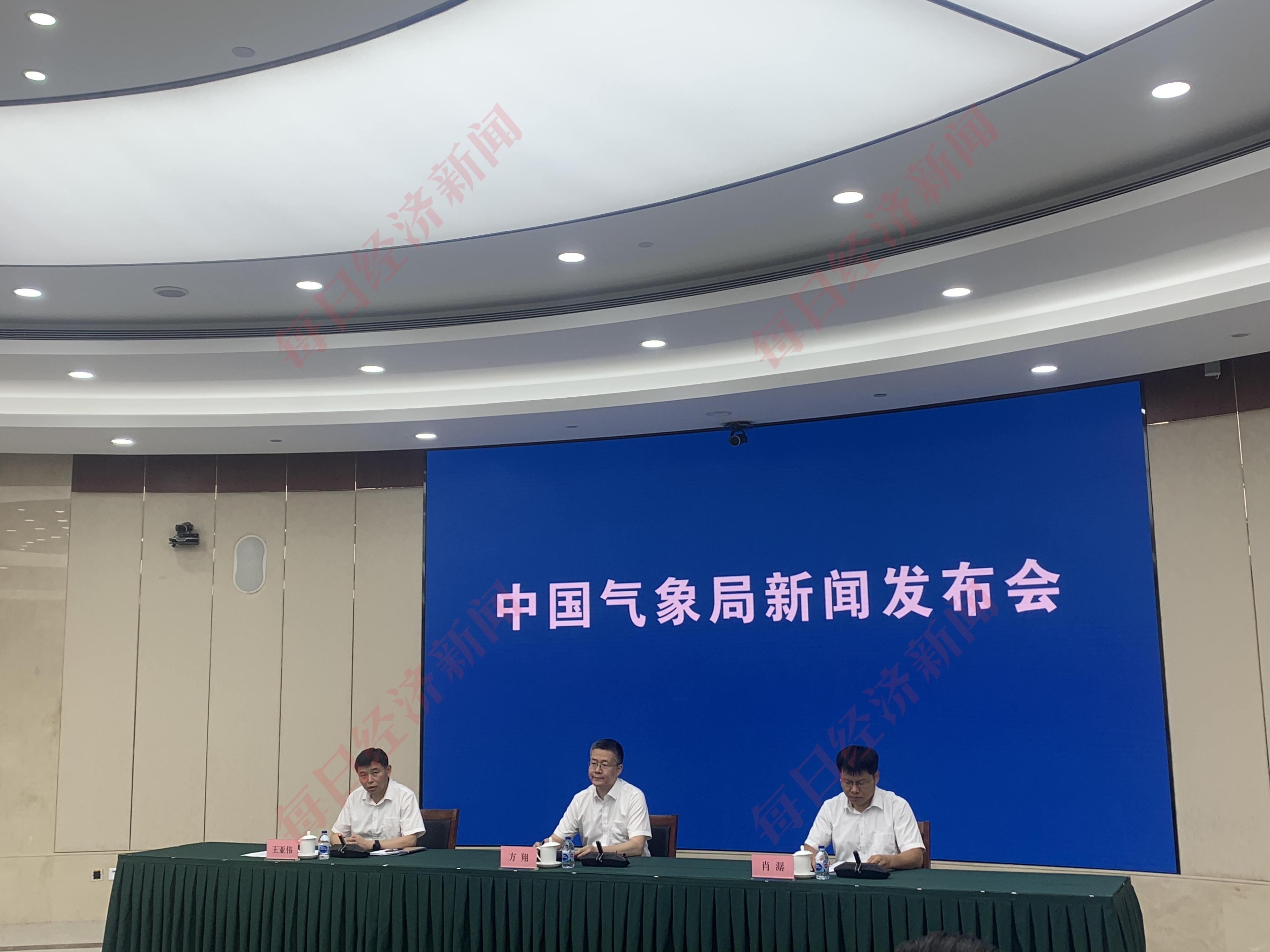 《每日经济新闻》记者在发布会上提问 图片来源:中国气象报 张奥光 摄